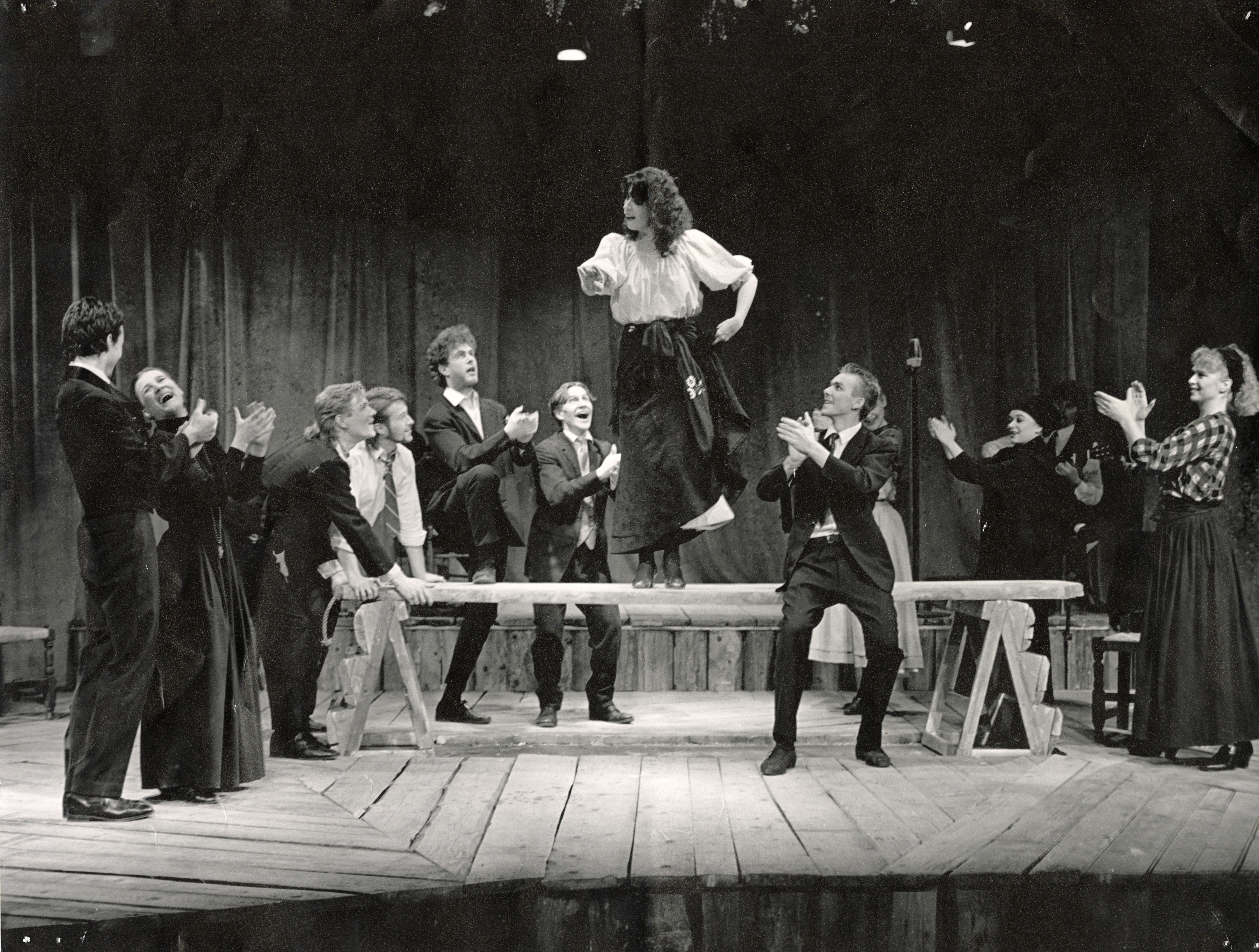 Fotografi fra Statens teaterhøgskoles produksjon Blodbryllaup med 3.klasse skuespillerlinjen (1986).