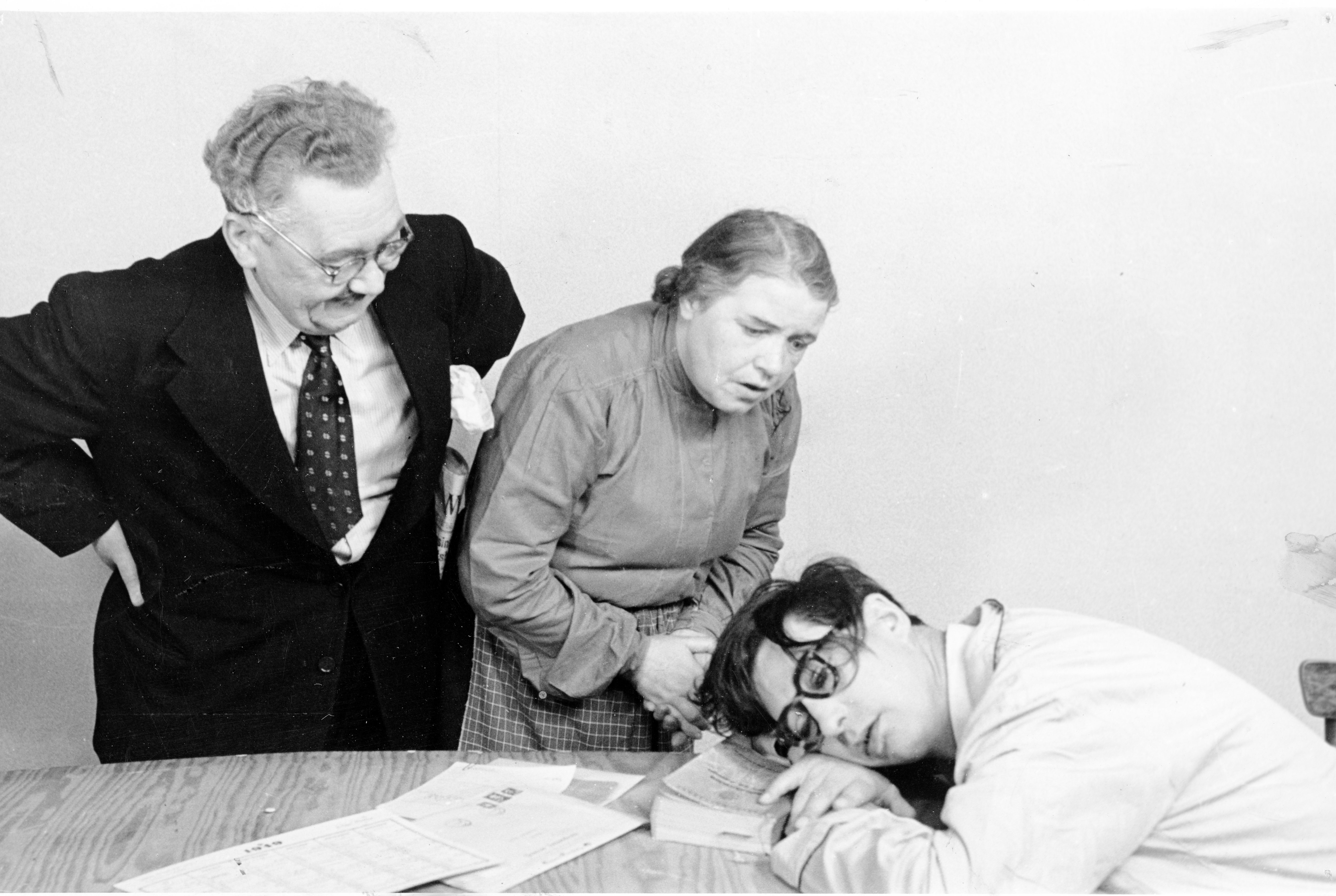 Fotografi fra Komediateatrets produksjon Hvor har jeg vært inatt? 1949.