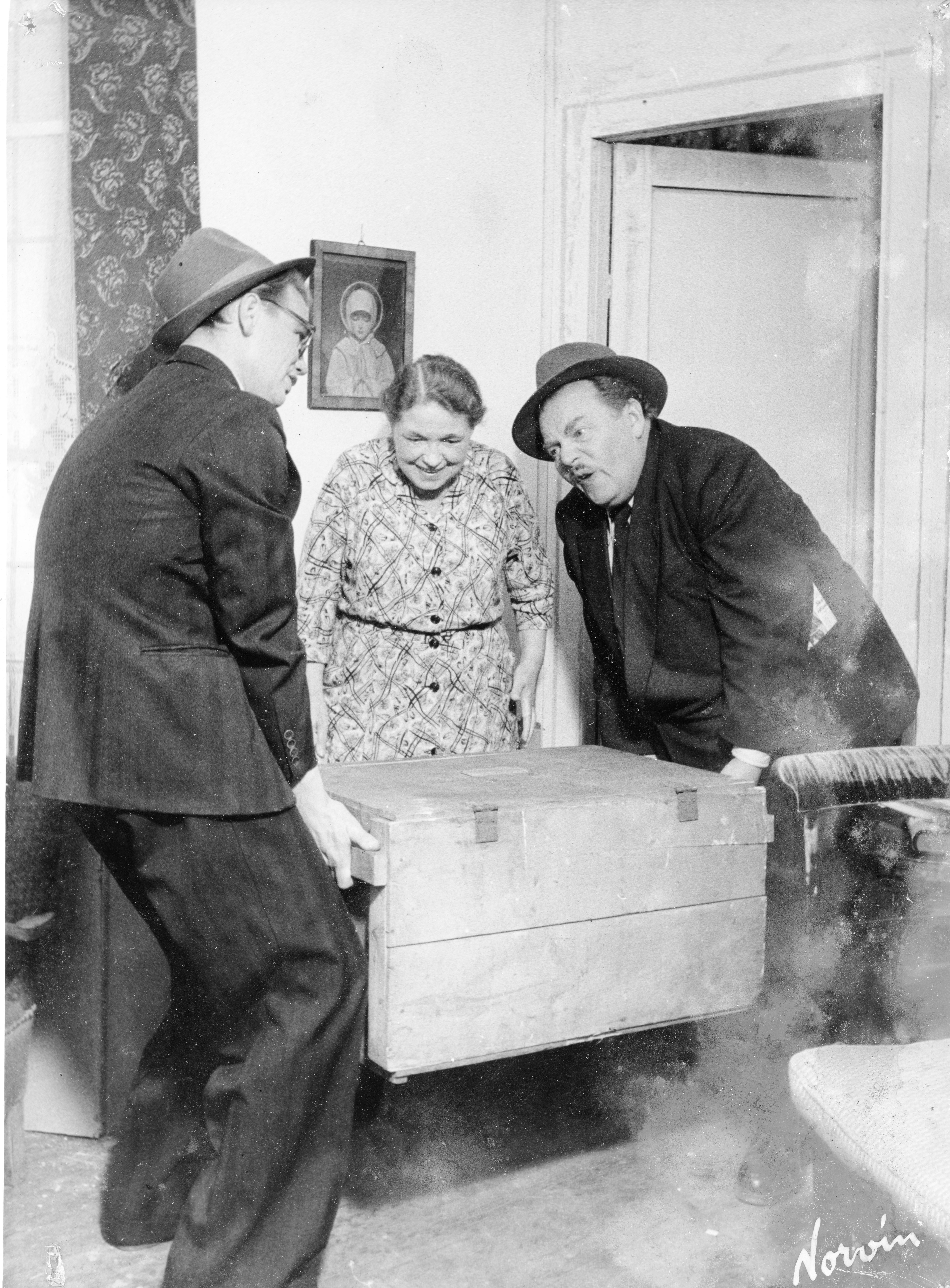 Fotografi fra Komediateatrets produksjon Hvor har jeg vært inatt? 1956.