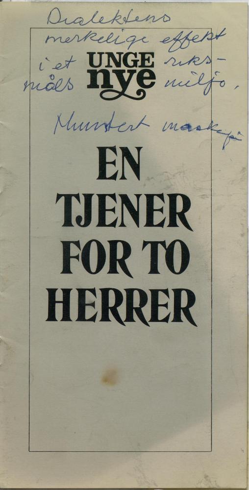 Forestillingsprogram fra Oslo Nye Teaters produksjon En tjener for to herrer (1976)
