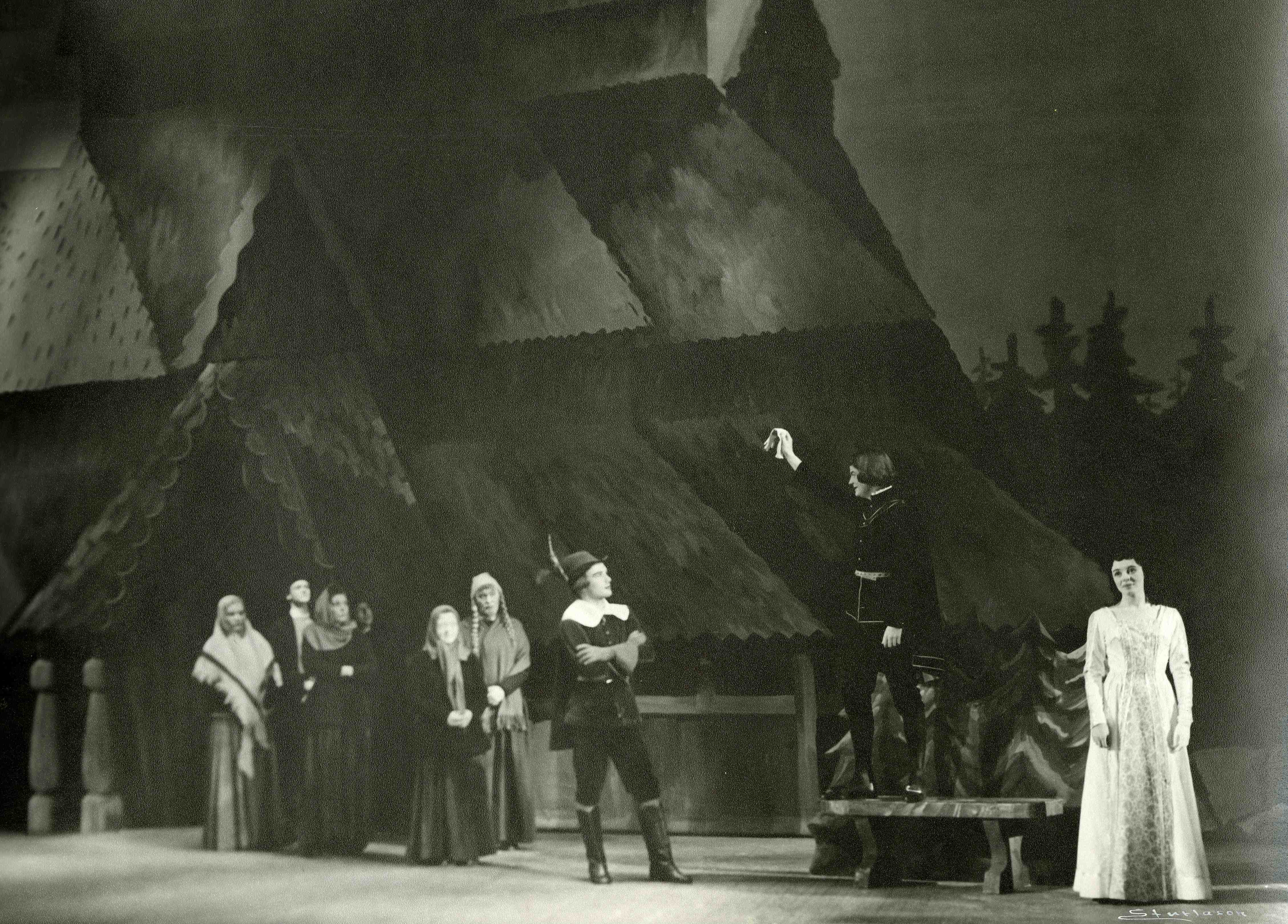 Fotografi fra Oslo Nye Teaters produksjon Kari Trestakk (1962)