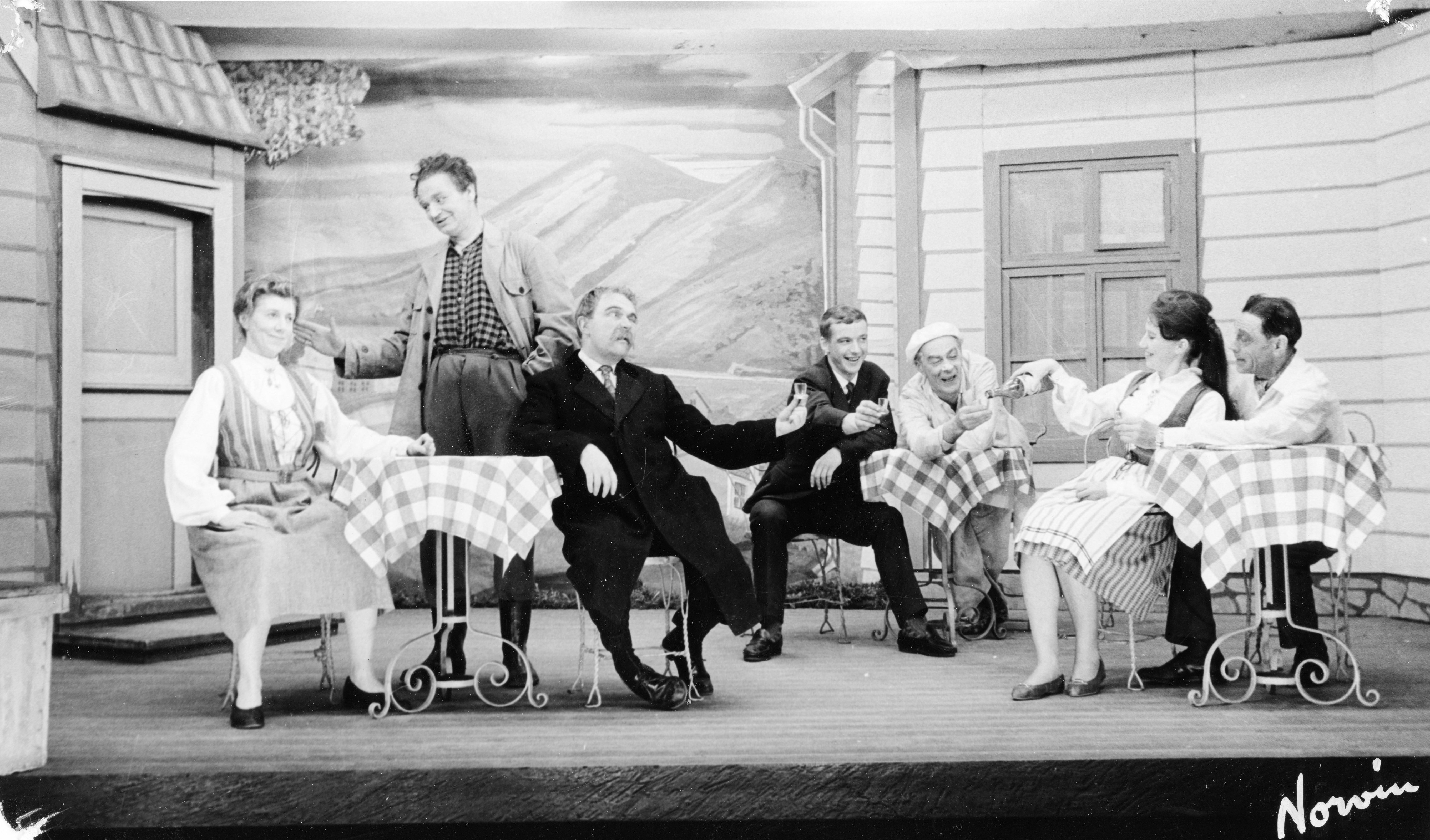 Fotografi fra Komediateatrets produksjon Katten klore, 1963.