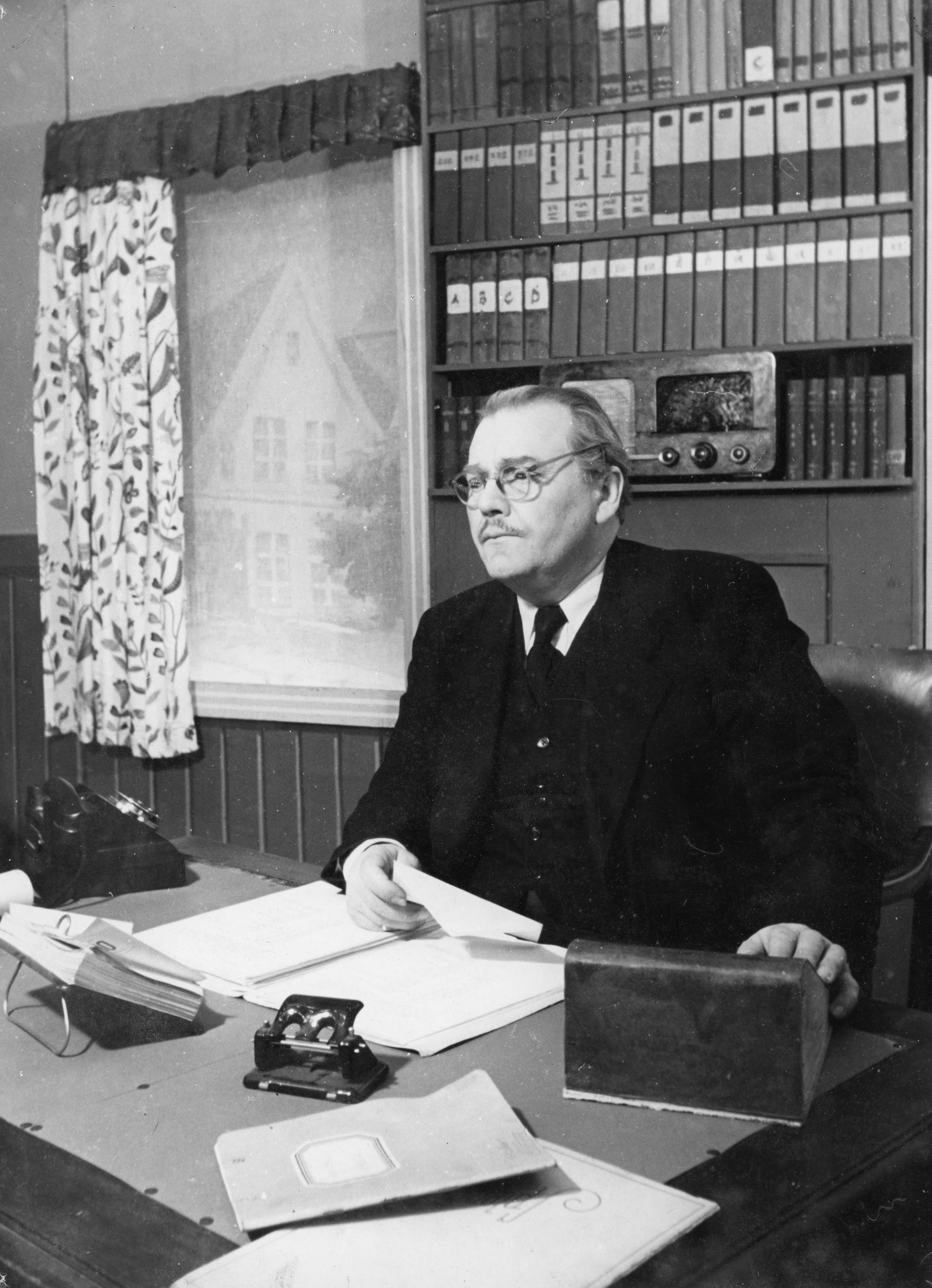 Fotografi fra Komediateatrets produksjon Kranselag i Dokkeby, 1954.