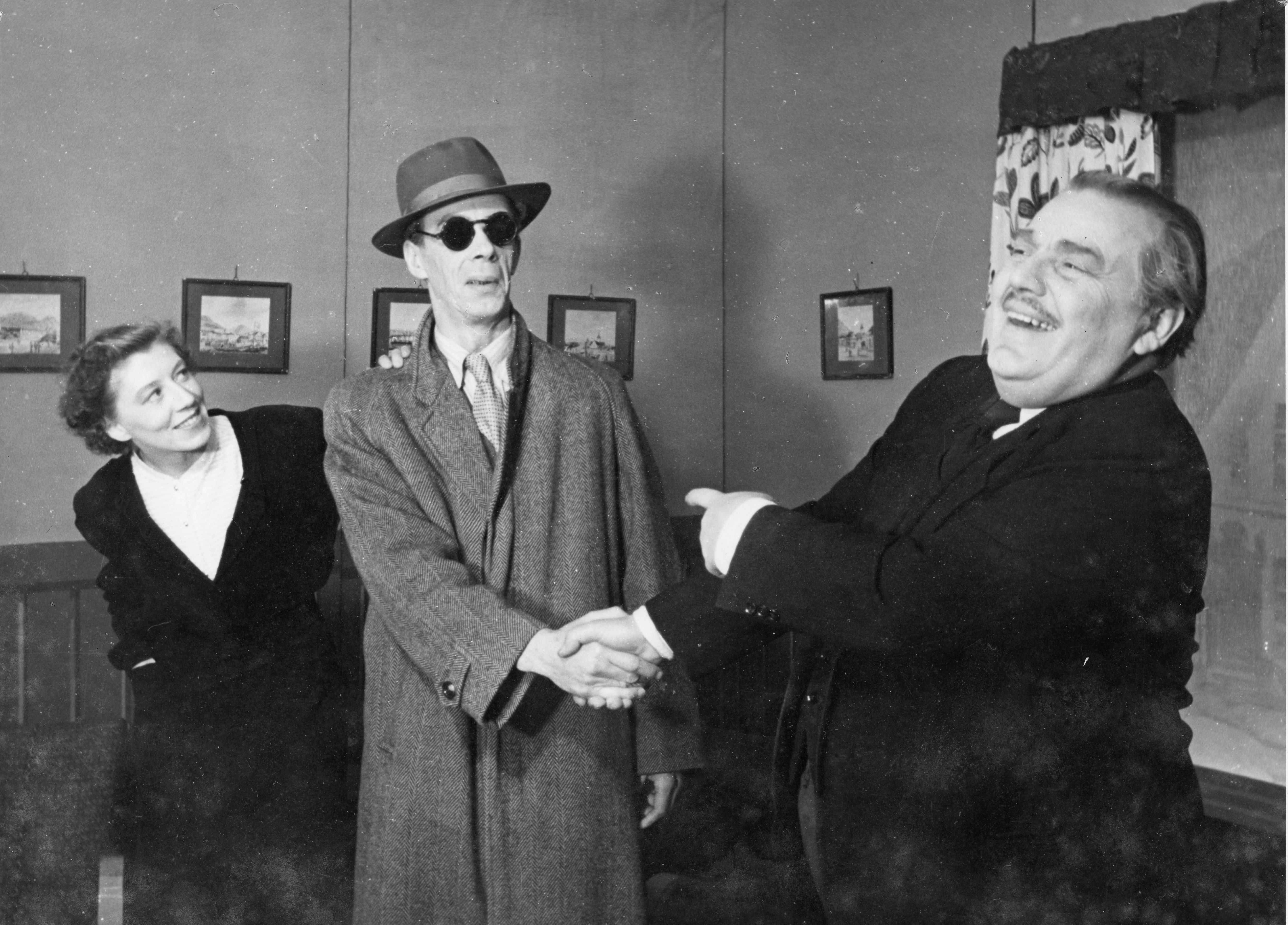 Fotografi fra Komediateatrets produksjon Kranselag i Dokkeby, 1954.
