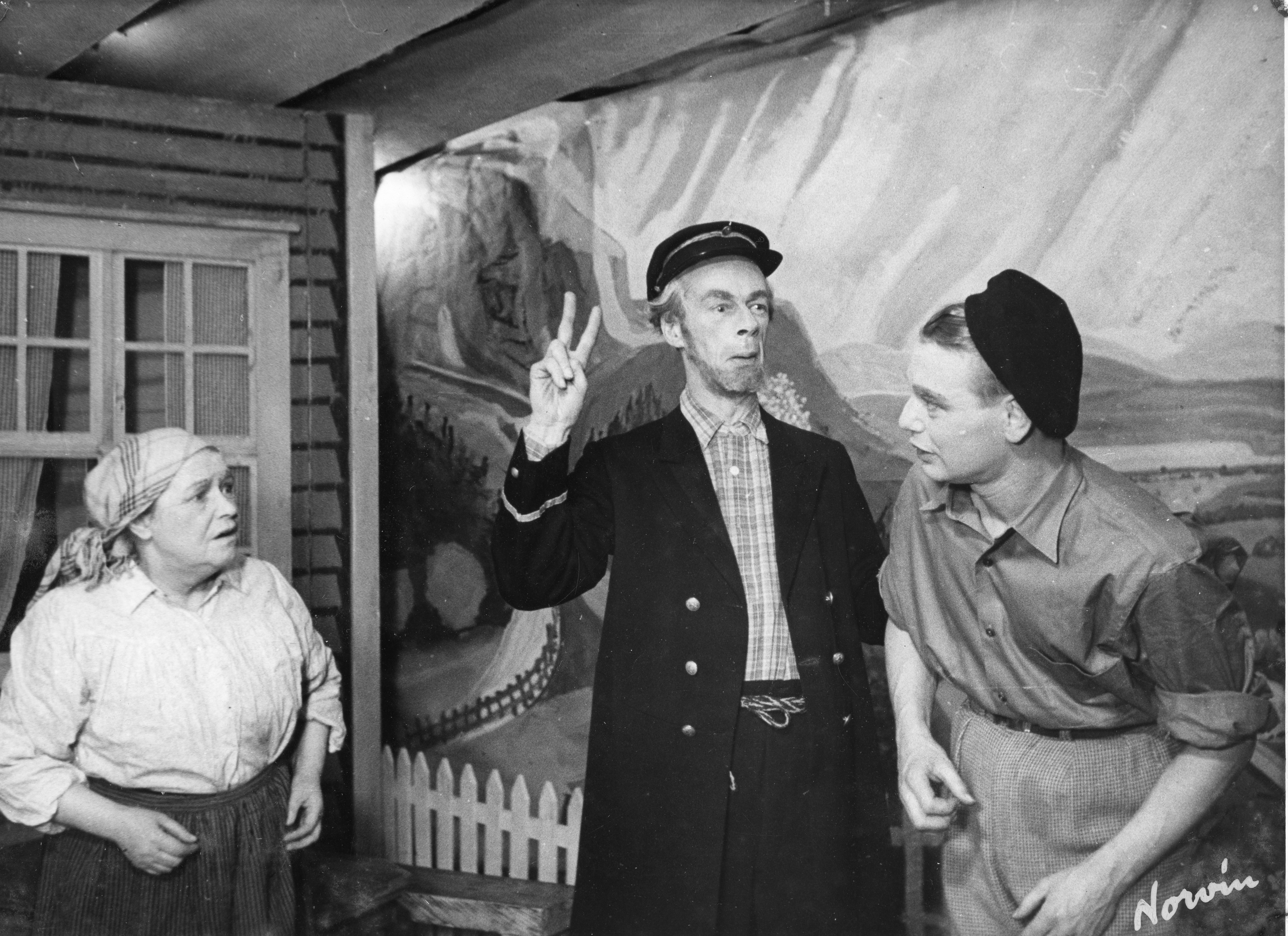 Fotografi fra Komediateatrets produksjon Lensmannsbrura, 1954.