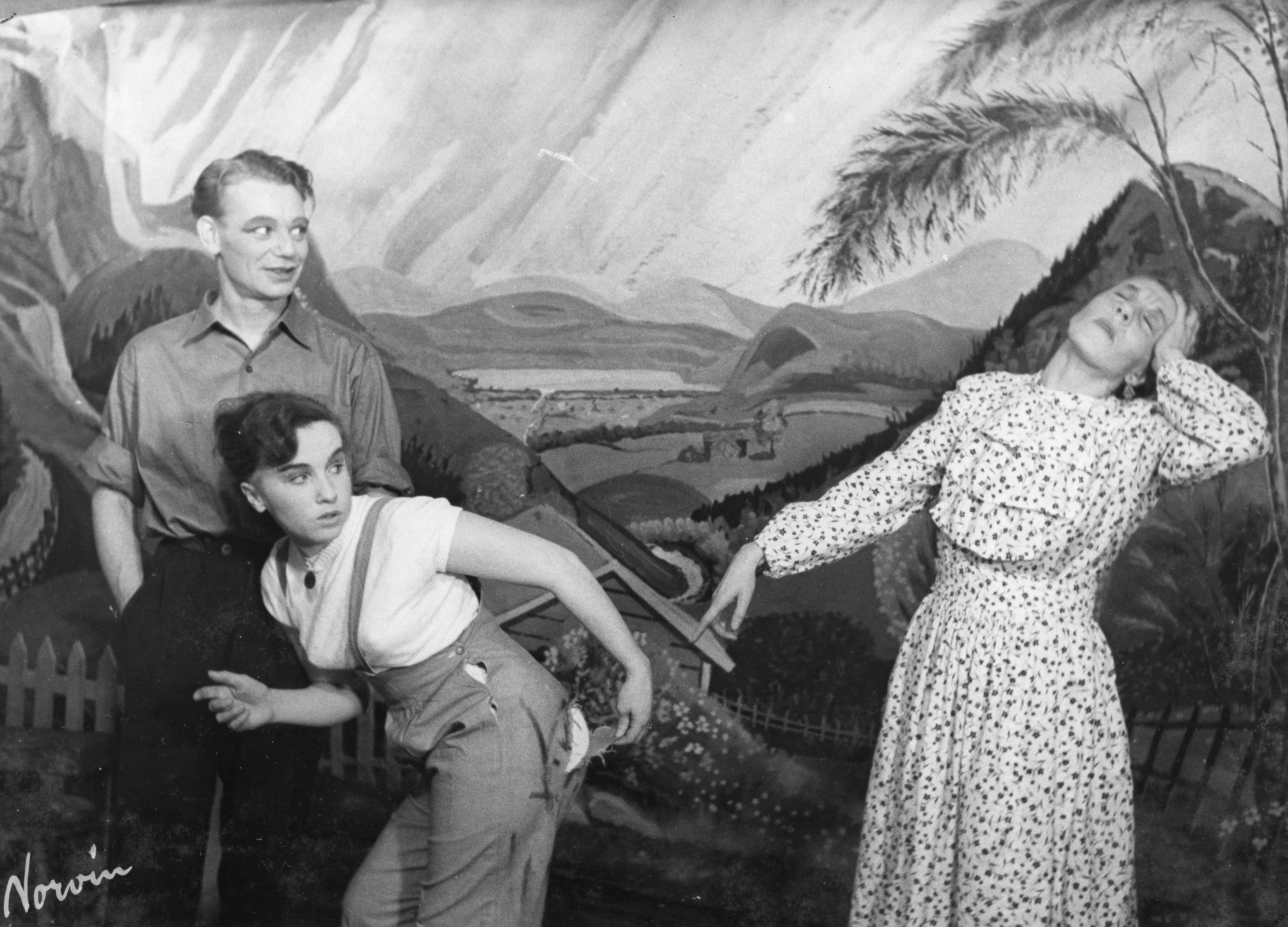 Fotografi fra Komediateatrets produksjon Lensmannsbrura, 1954.