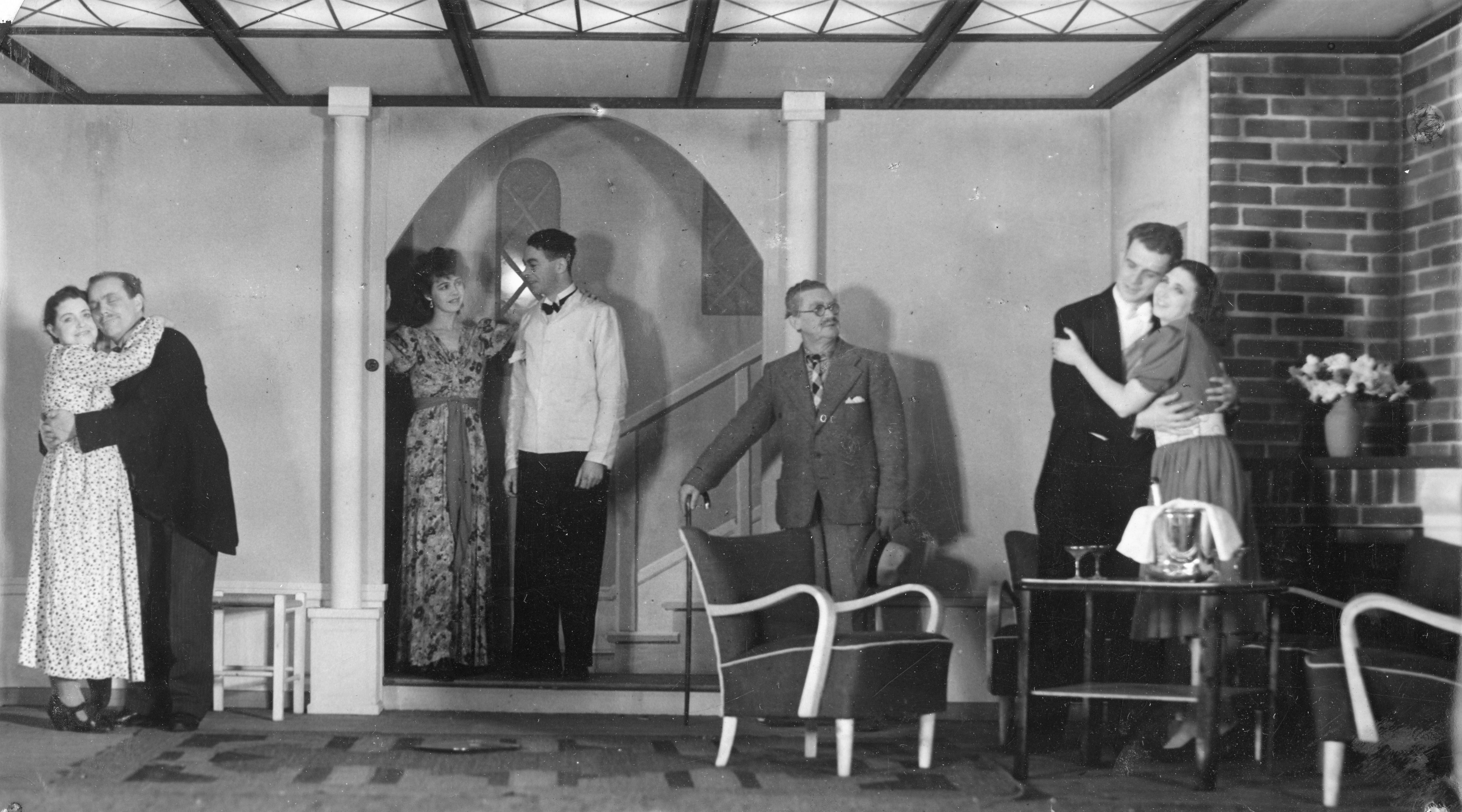Fotografi fra Komediateatrets produksjon Pappa på galei, 1943.