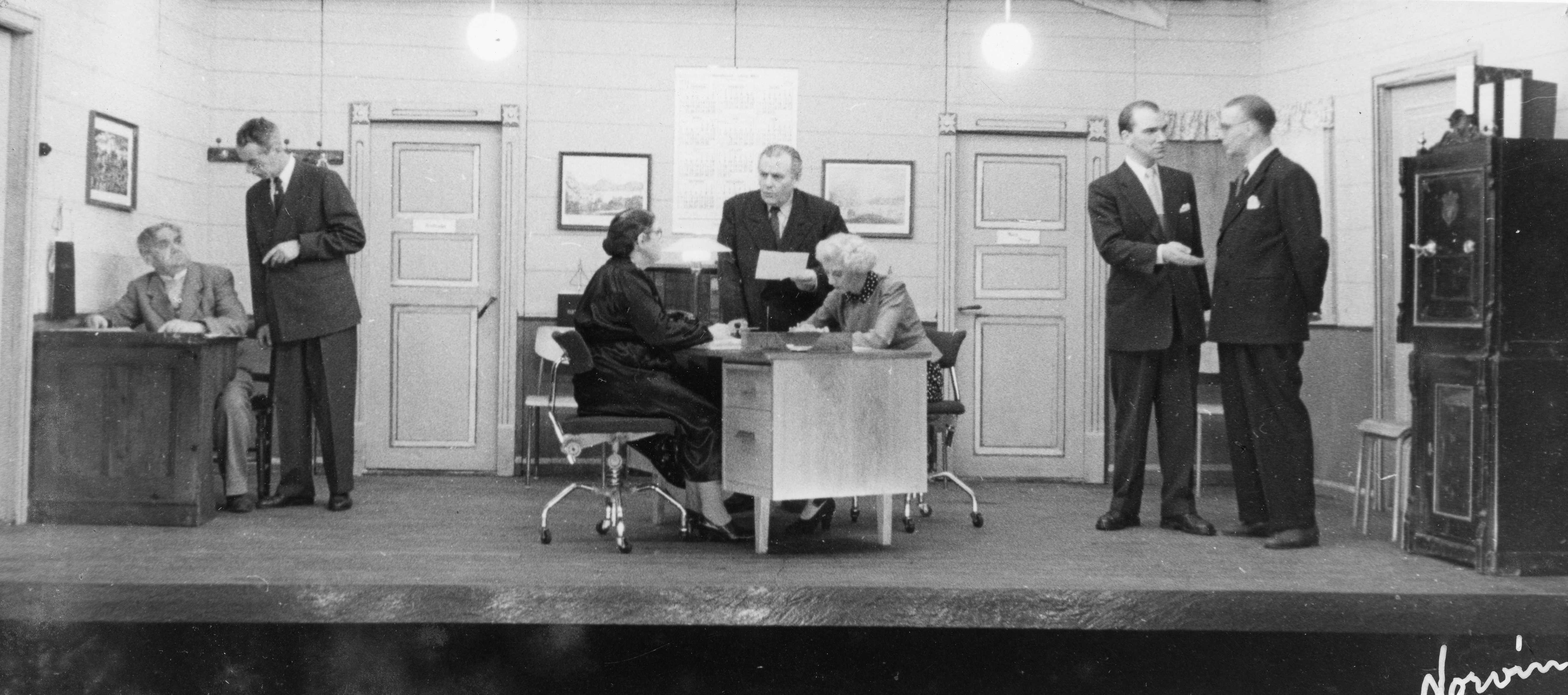 Fotografi fra Komediateatrets produksjon Mannen med fløyelsmasken, 1954.