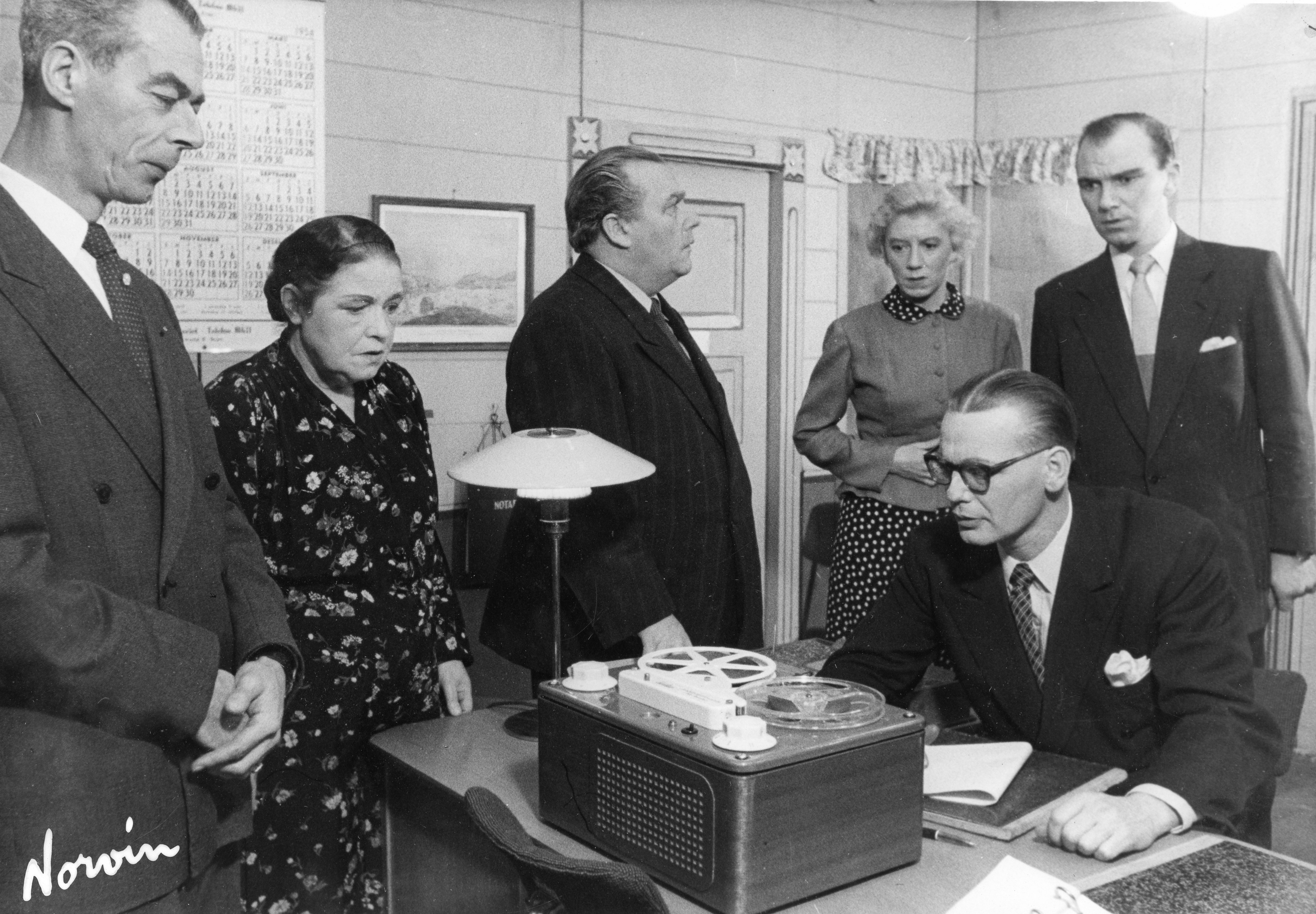 Fotografi fra Komediateatrets produksjon Mannen med fløyelsmasken, 1954