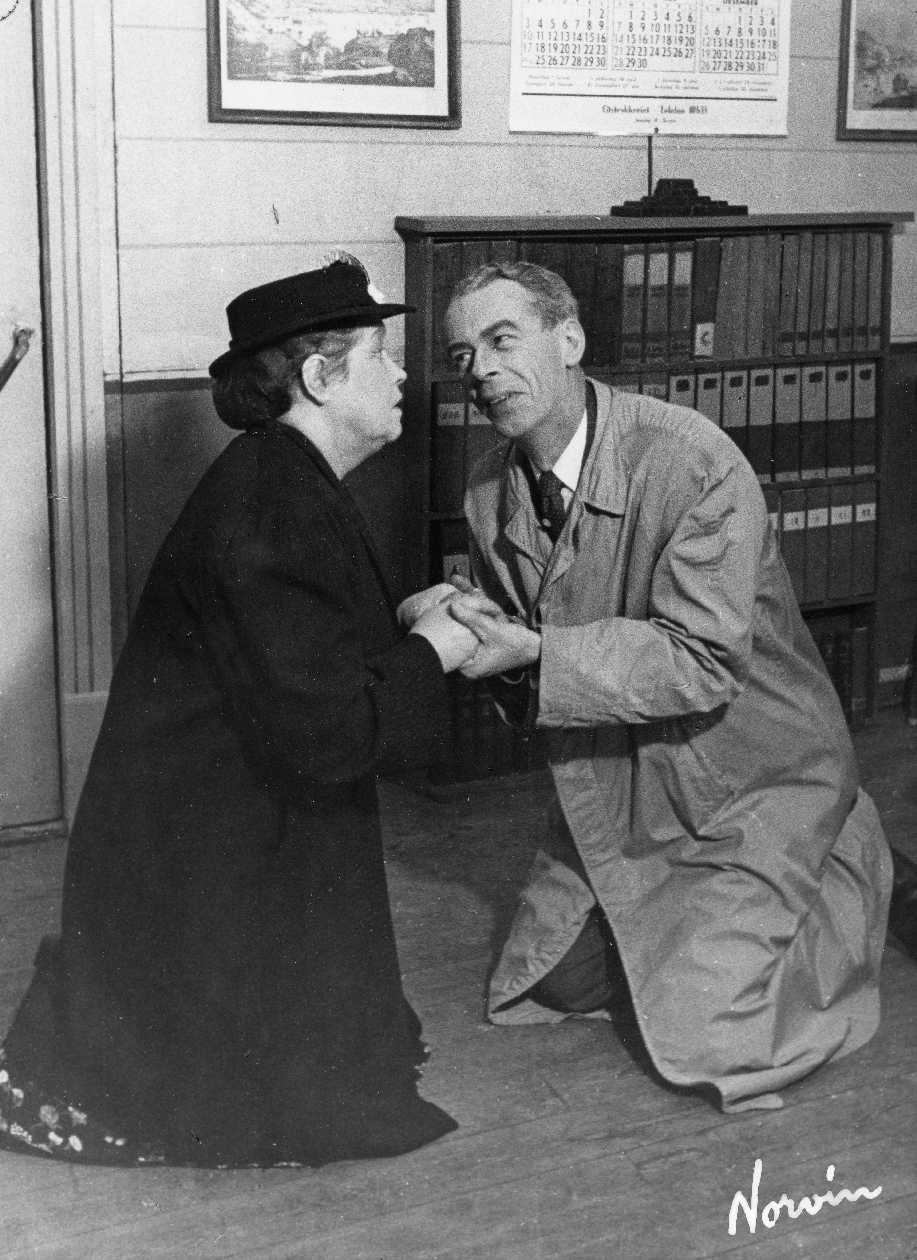 Fotografi fra Komediateatrets produksjon Mannen med fløyelsmasken, 1954