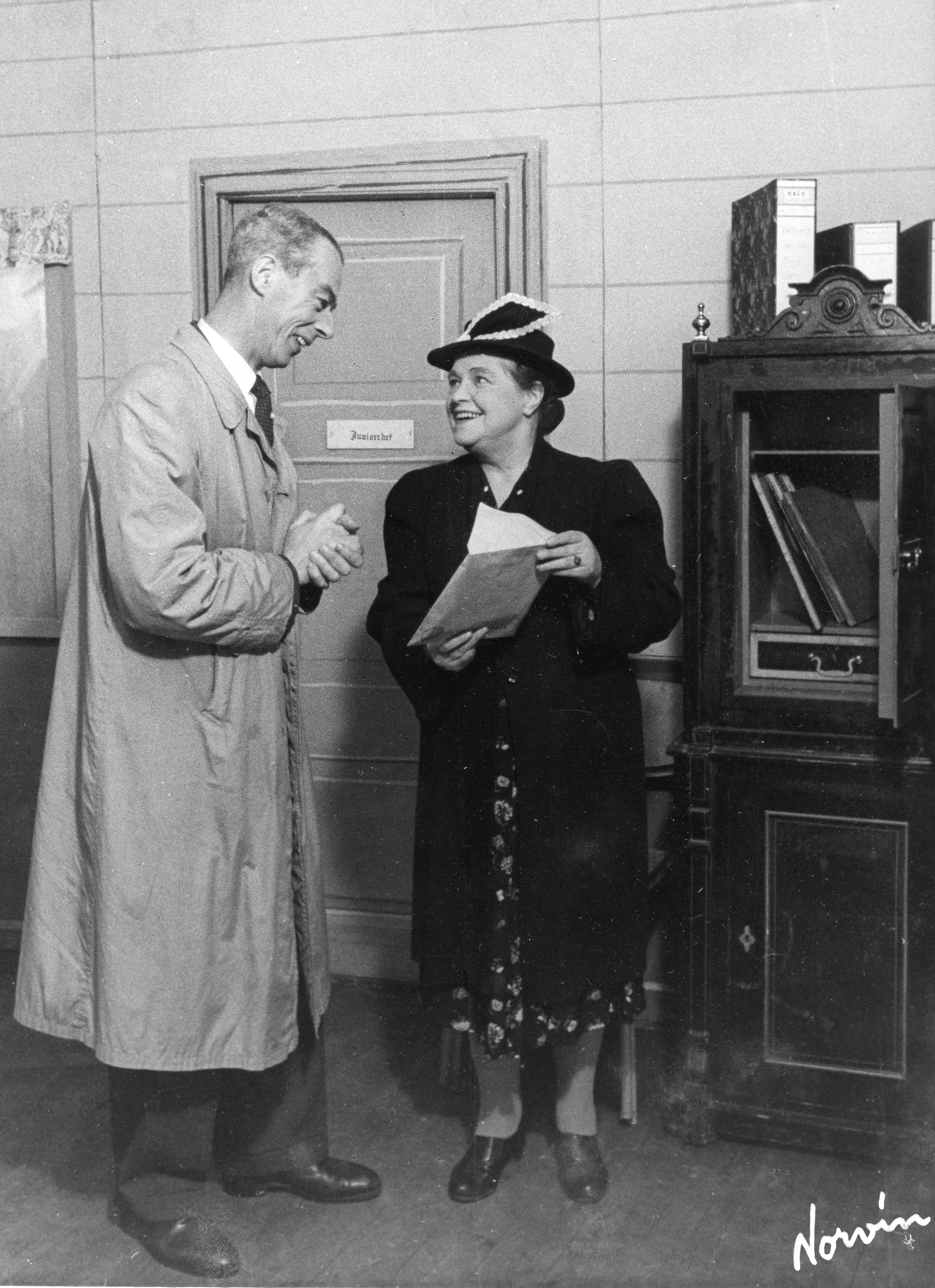 Fotografi fra Komediateatrets produksjon Mannen med fløyelsmasken, 1954