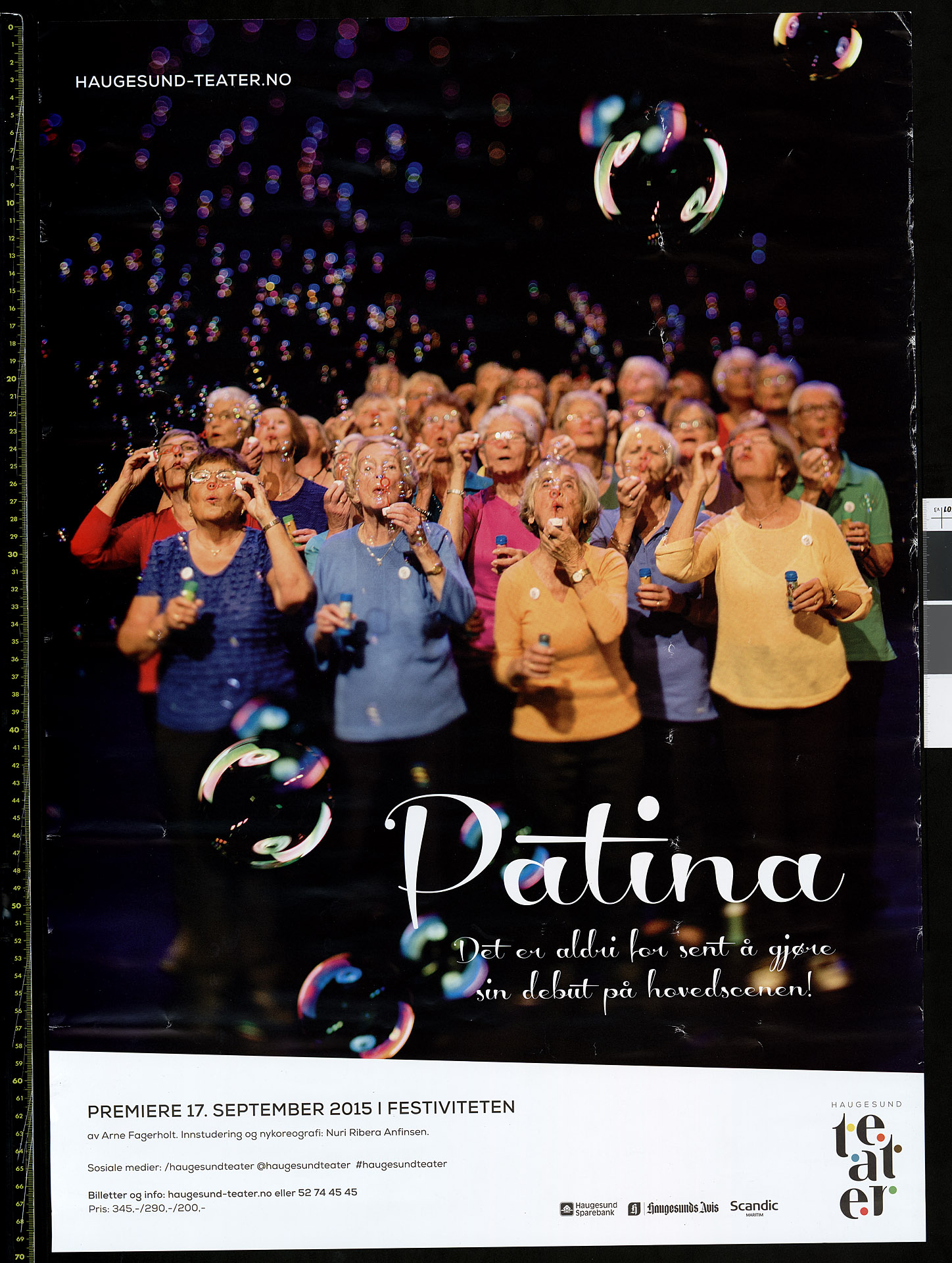 Plakat for Orkdals Kulturscenes produksjon Patina (2012). Plakaten ble produsert i forbindelse med forestillingene på Haugesund Teater i 2015