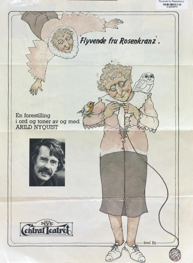 Forestillingsprogram fra Oslo Nye Teaters produksjon Flyvende fru Rosenkranz (1983)