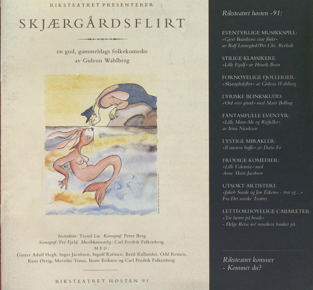 Forestillingsprogram fra Riksteatrets produksjon Skjærgårdsflirt (1991)