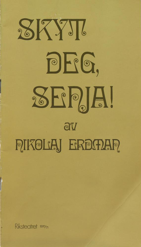 Forestillingsprogram for Riksteatrets produksjon Skyt deg, Senja! (1970).