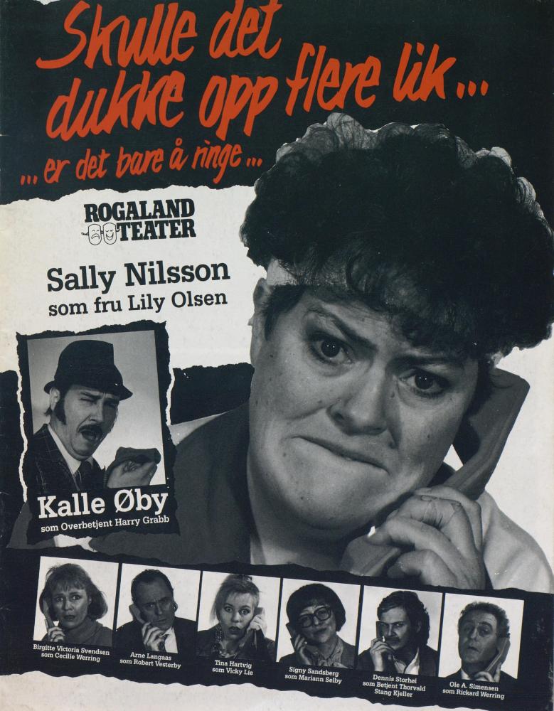 Forestillingsprogram for Rogaland Teaters produksjon Skulle det dukke opp flere lik er det bare å ringe! (1988)