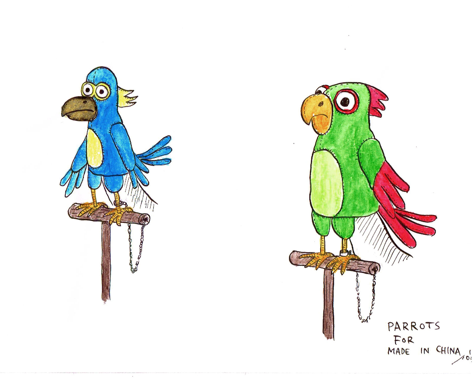 Skisse av teaterfigurer til Wakka Wakkas produksjon Made in China (2017).
