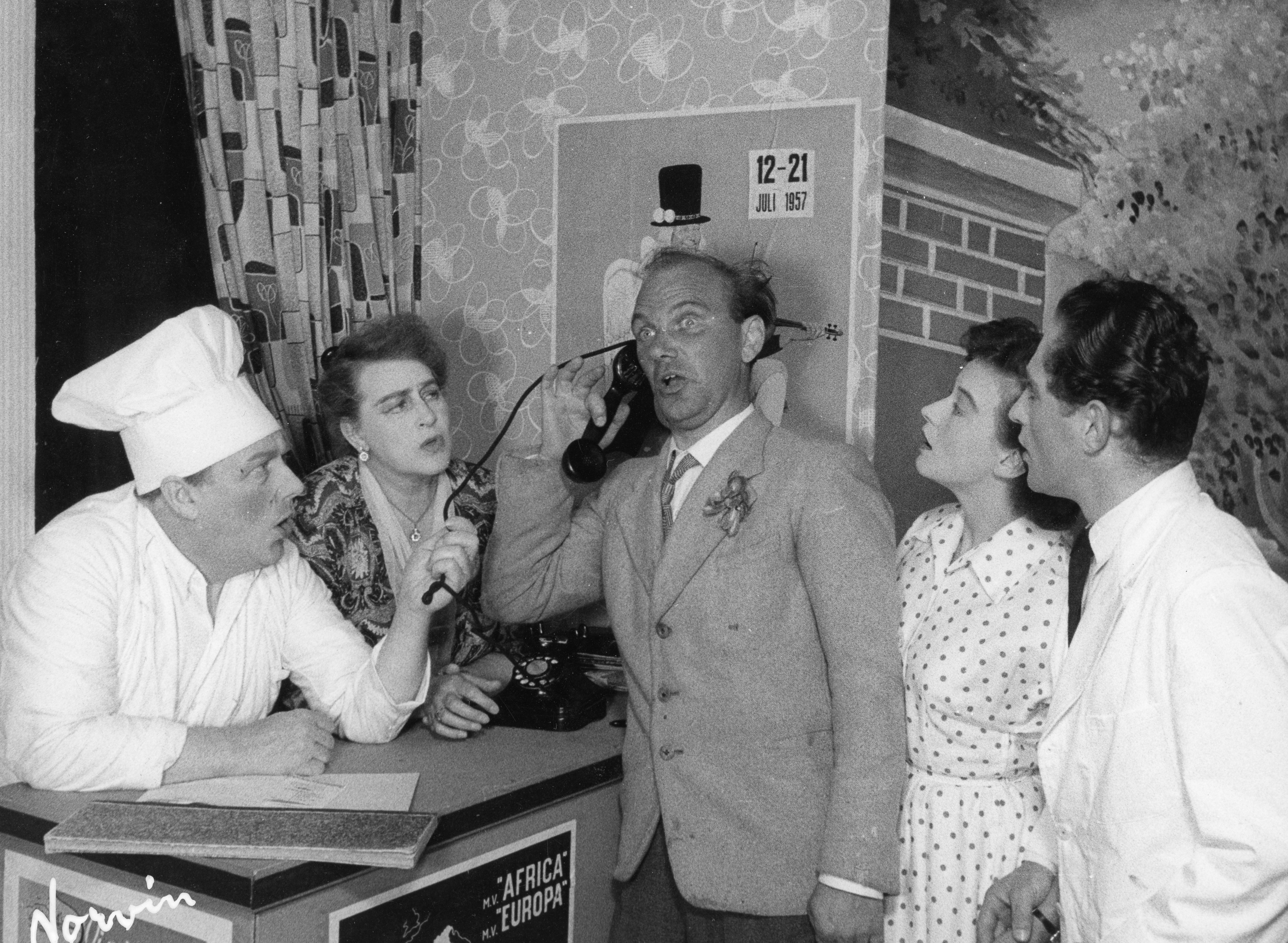 Fotografi fra Komediateatrets produksjon Spøkelseshotellet, 1957