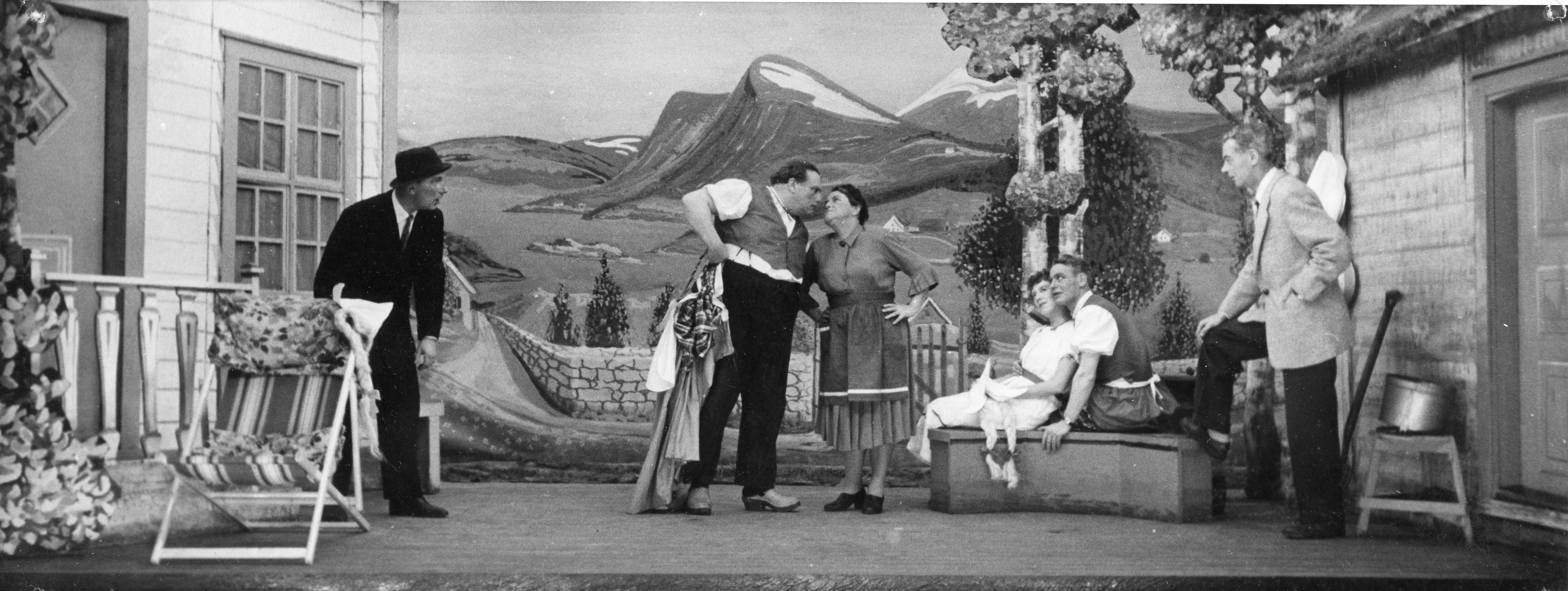 Fotografi fra Komediateatrets produksjon Trøtte Teodor, 1955.