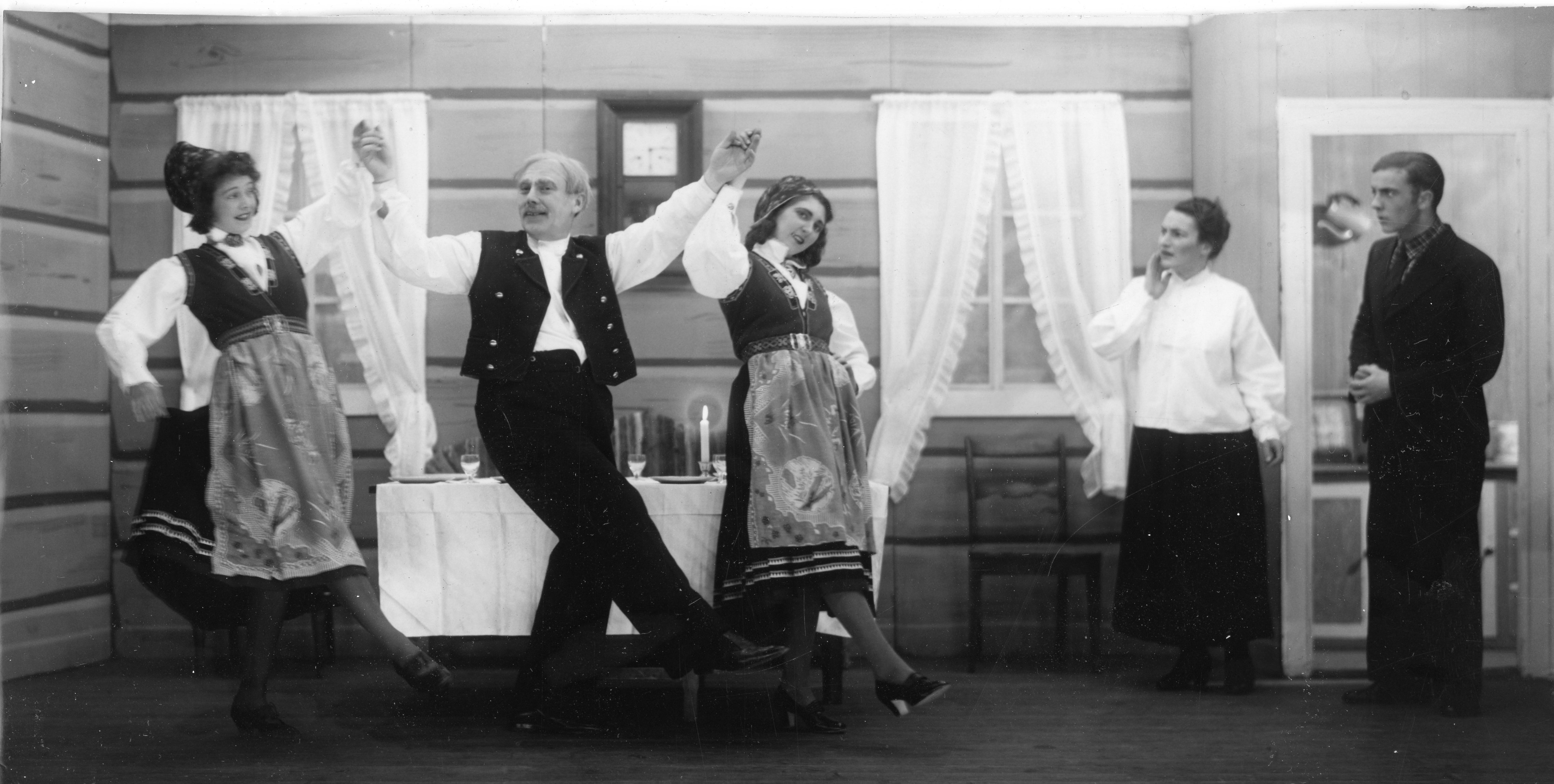 Fotografi fra Komediateatrets produksjon Tvo gjentor og ein gut, 1940.
