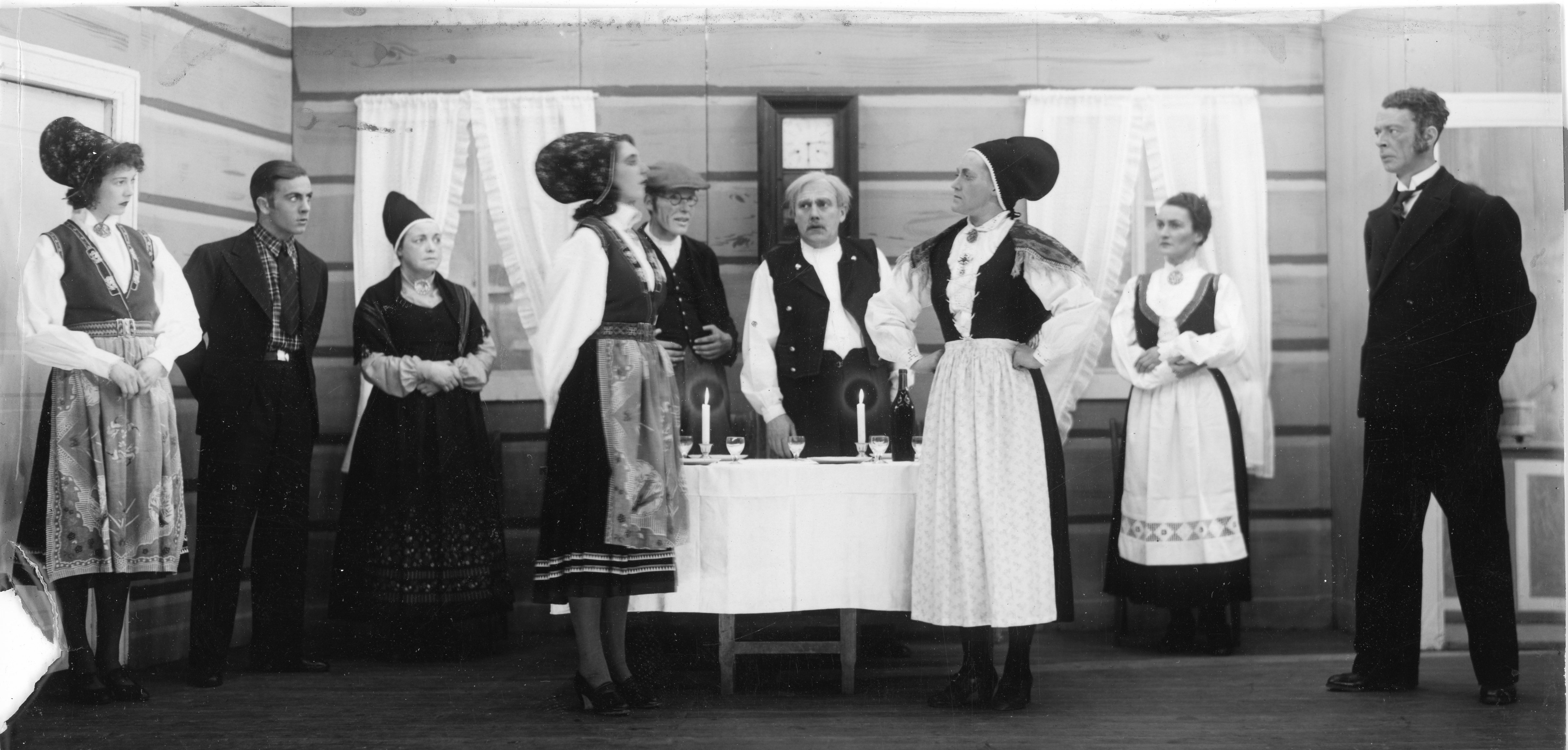 Fotografi fra Komediateatrets produksjon Tvo gjentor og ein gut, 1940.