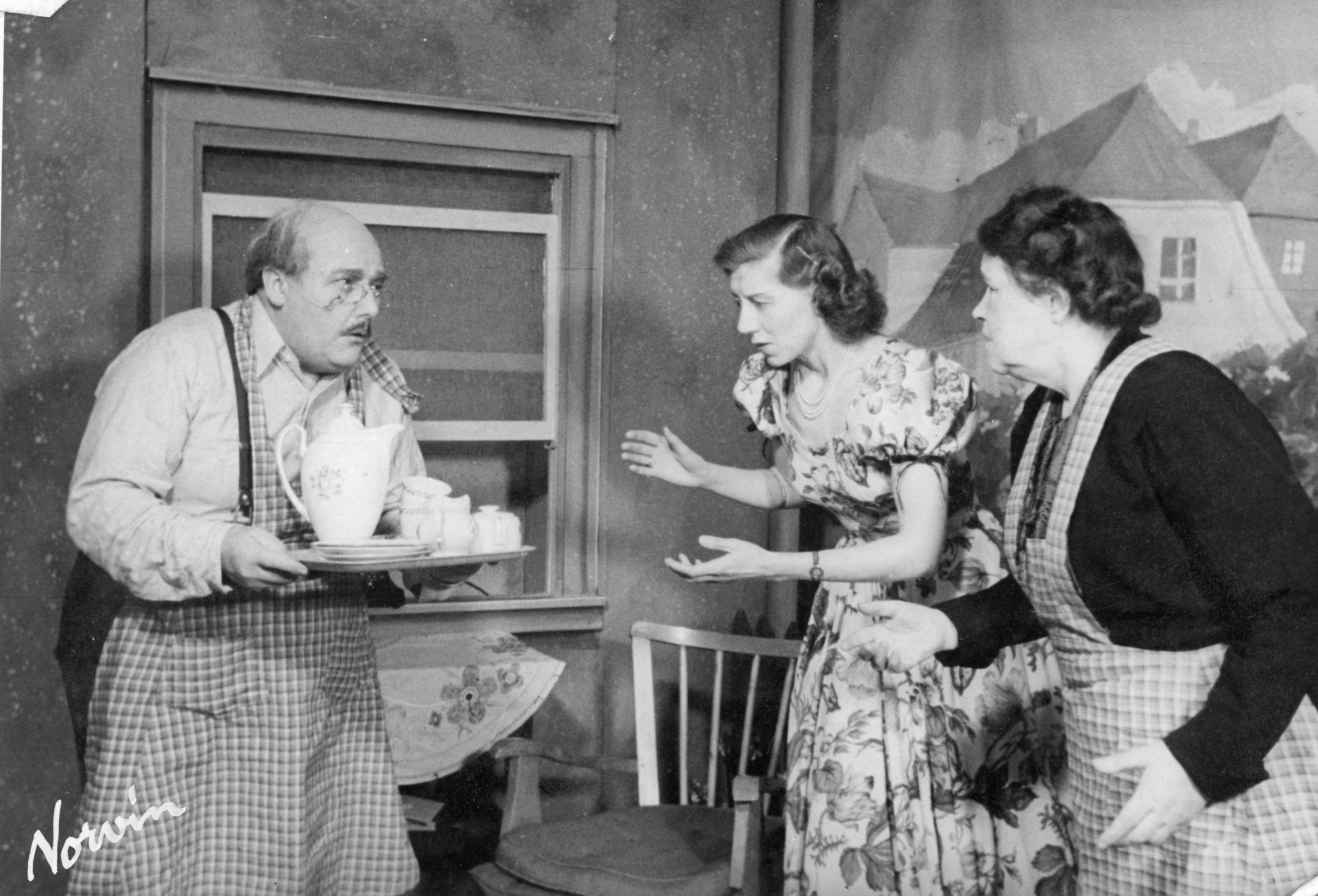 Fotografi fra Komediateatrets produksjon Tøffelhelten, 1953.