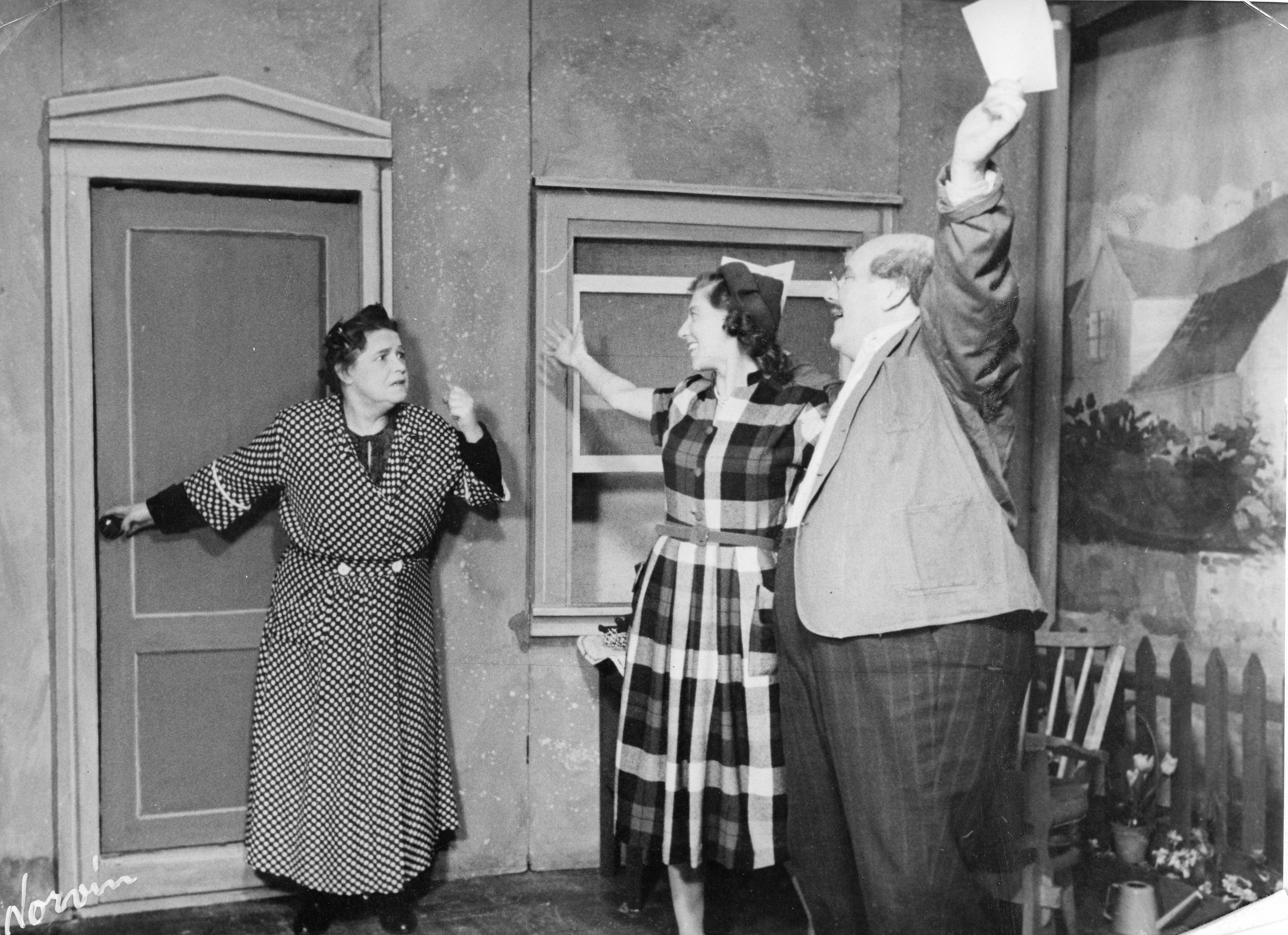 Fotografi fra Komediateatrets produksjon Tøffelhelten, 1953.