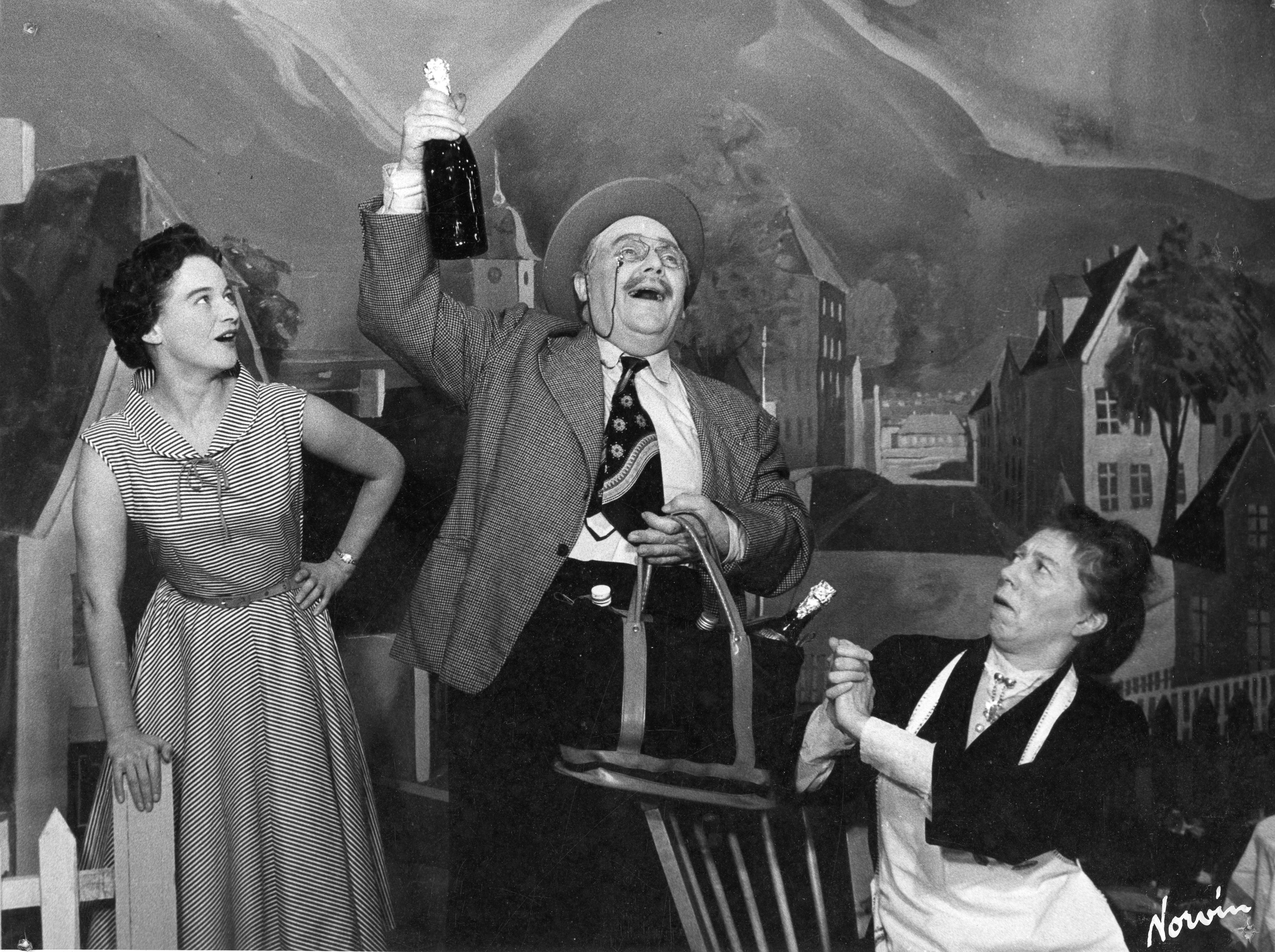 Fotografi fra Komediateatrets produksjon Tøffelhelten, 1958.
