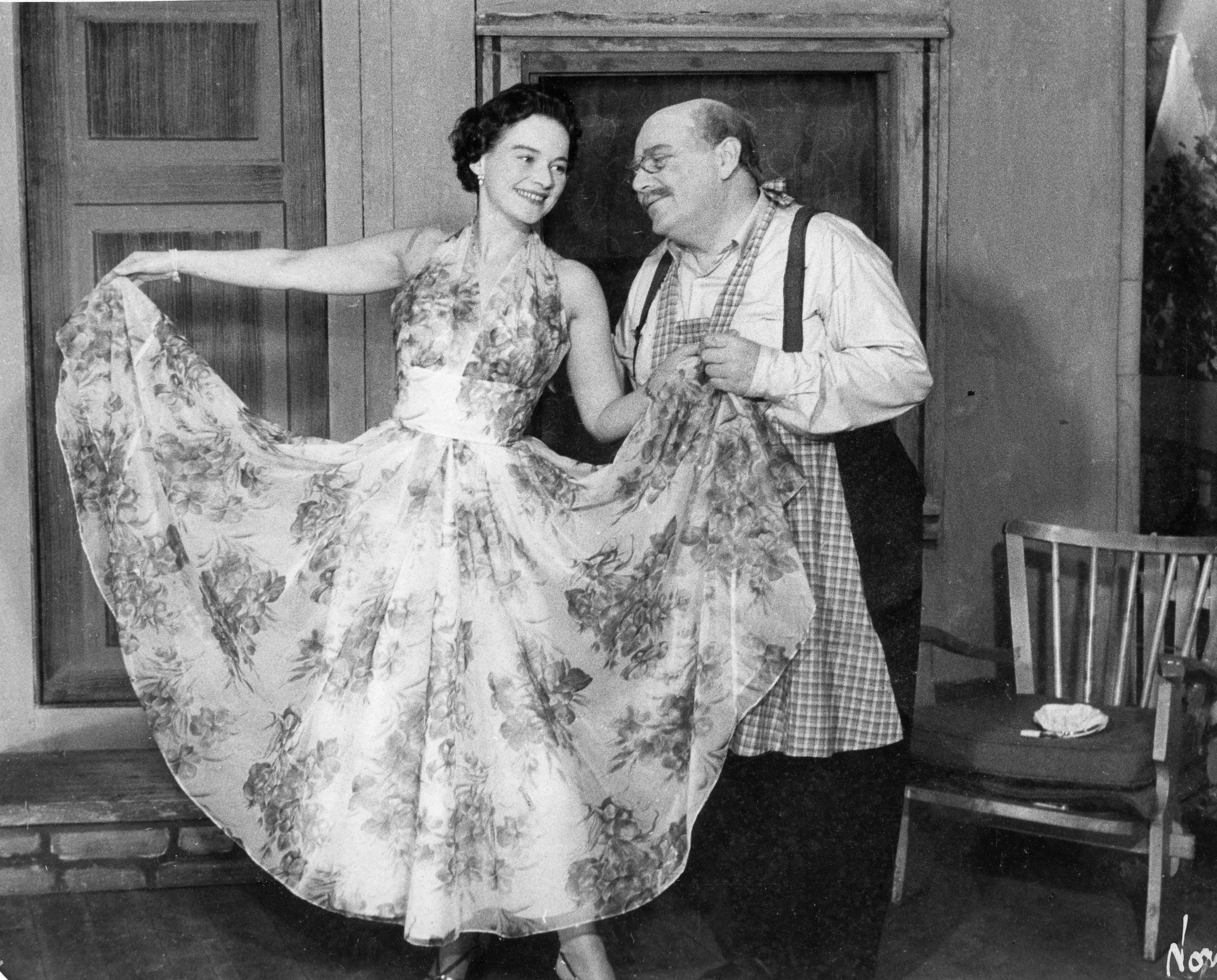 Fotografi fra Komediateatrets produksjon Tøffelhelten, 1953.