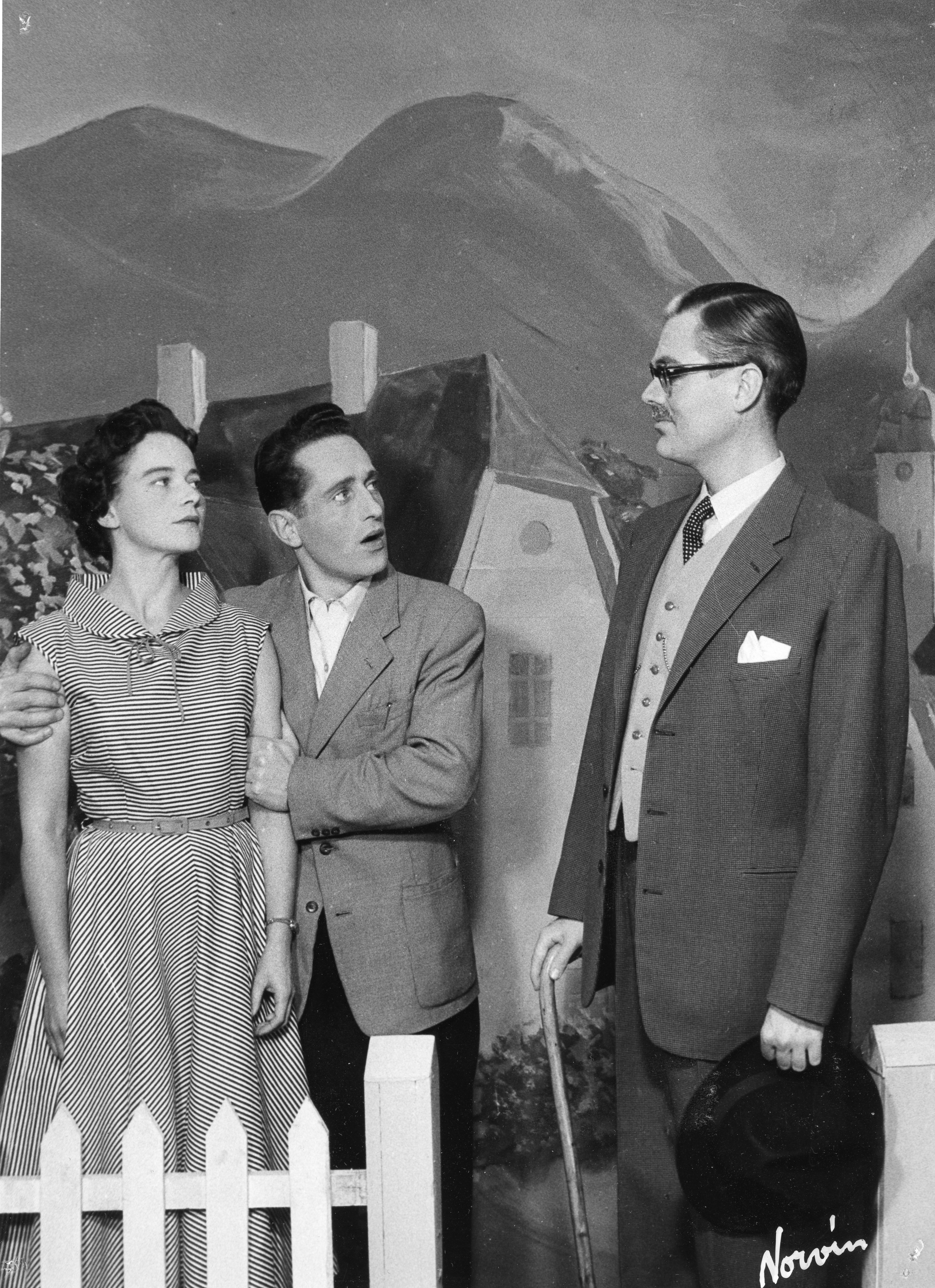 Fotografi fra Komediateatrets produksjon Tøffelhelten, 1958.
