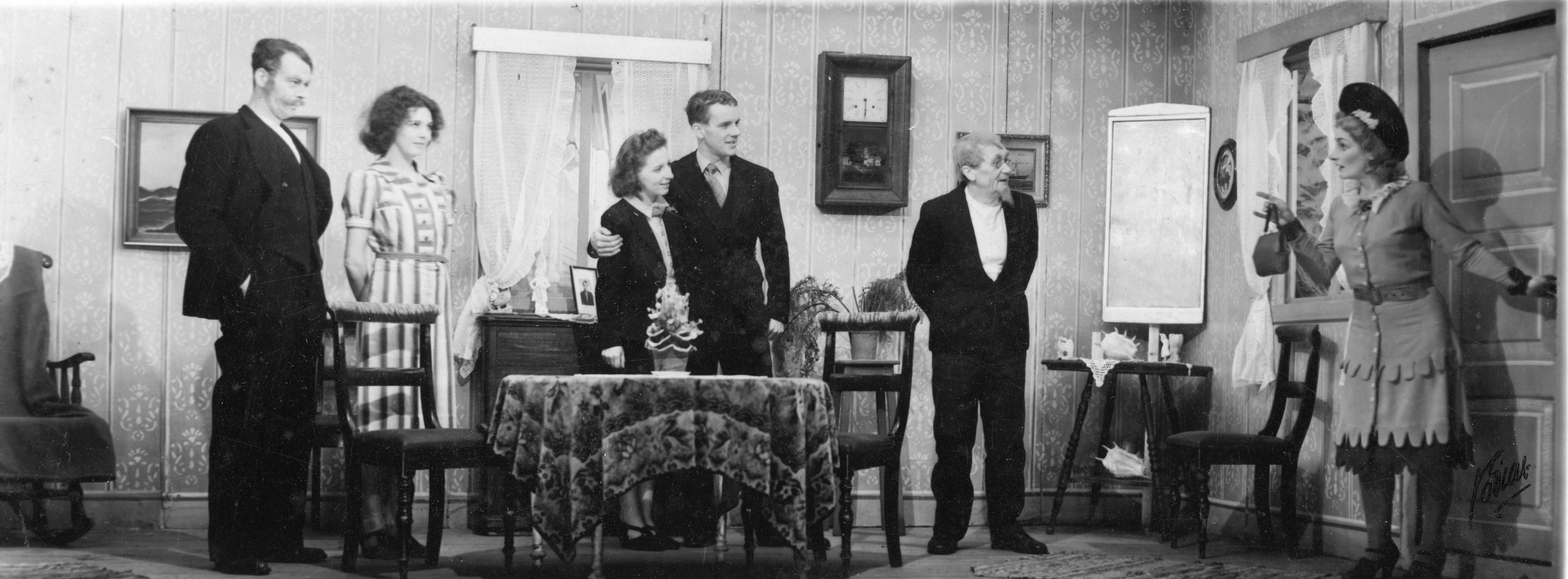 Fotografi fra Komediateatrets produksjon Vi møtes på Helleveien, 1942.