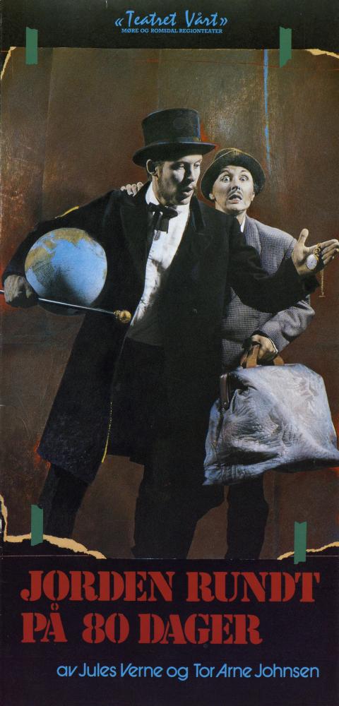 Forestillingsprogram til Teatret Vårts produksjon Jorden rundt på 80 dager (1989)
