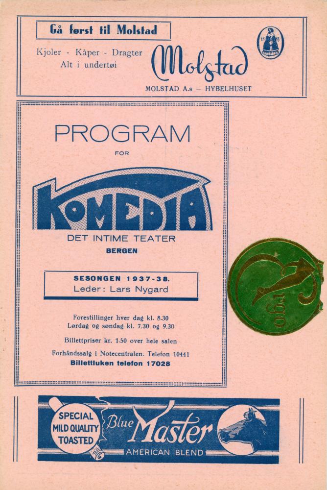 Program fra Komediateatrets produksjon Han Ola er i byen, 1938.