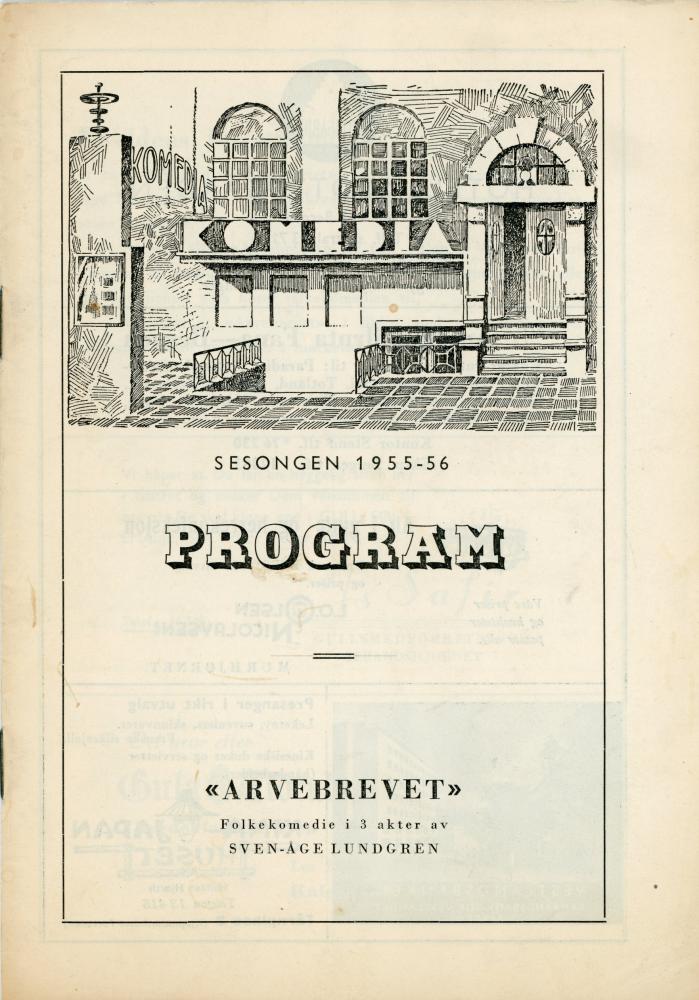 Program fra Komediateatrets produksjon Arvebrevet, 1956