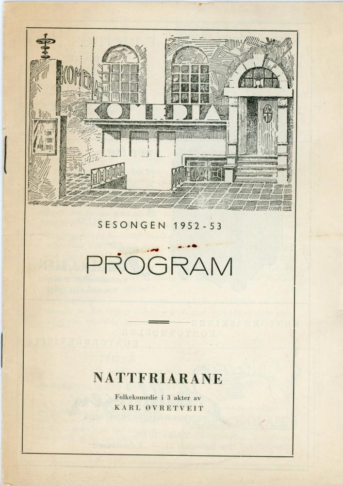 Program fra Komediateatrets produksjon Nattfriarane, 1953.