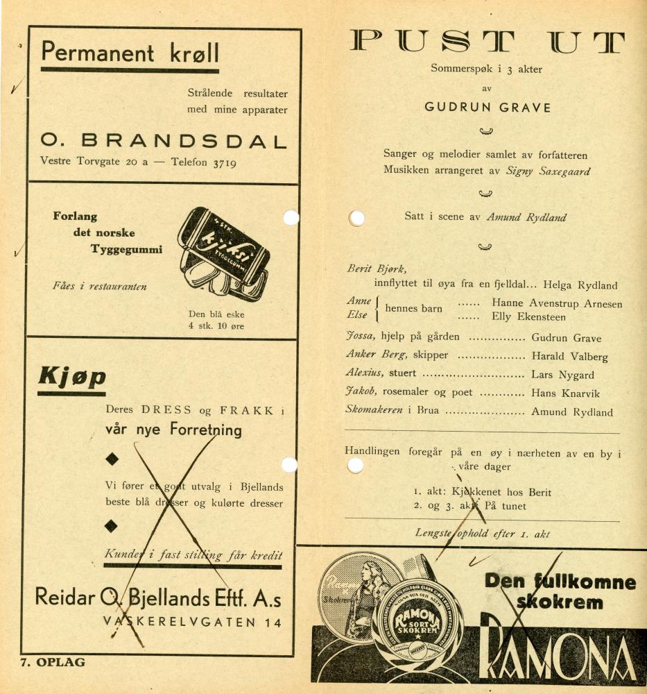 Program fra Komediateatrets produksjon Pust ut, 1933.