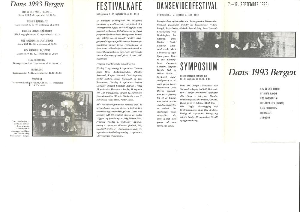 Festivalprogram for Dans 1993 Bergen.