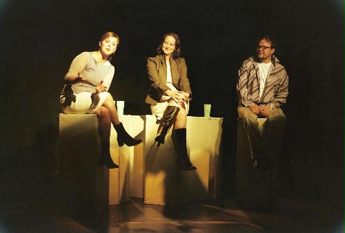 Fotografi fra Transiteatret-Bergens produksjon Walk Cat, Walk! (2002). På bildet: Elisabeth Lahr, Camilla Skrede Johannessen, Tor Christian Faugstad Bleikli.