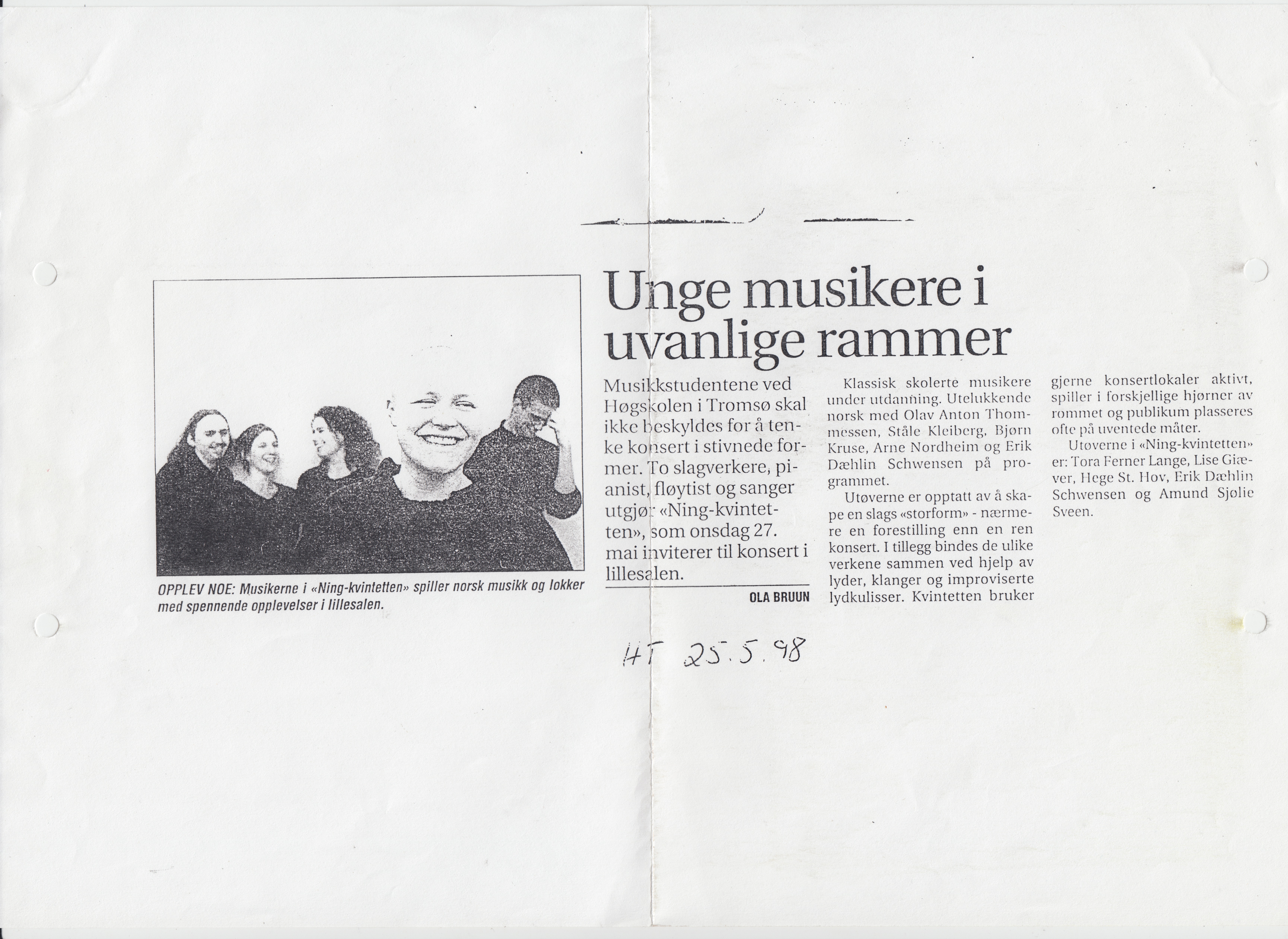 Avisartikkel om Nings forestilling Klangfarger (1998)