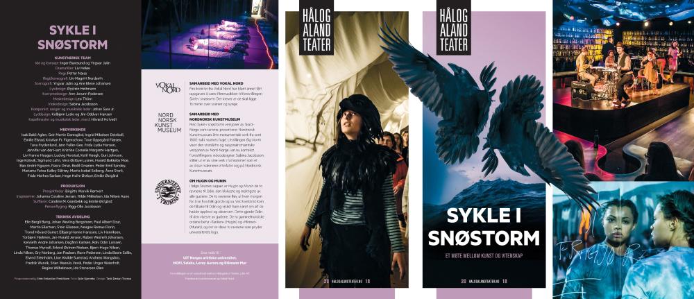 Forestillingsprogram til Hålogaland Teaters produksjon Sykle i snøstorm - et møte mellom kunst og vitenskap (2018) i et samarbeid mellom Lille HT, Nordnorsk Kunstmuseum og Vokal Nord.