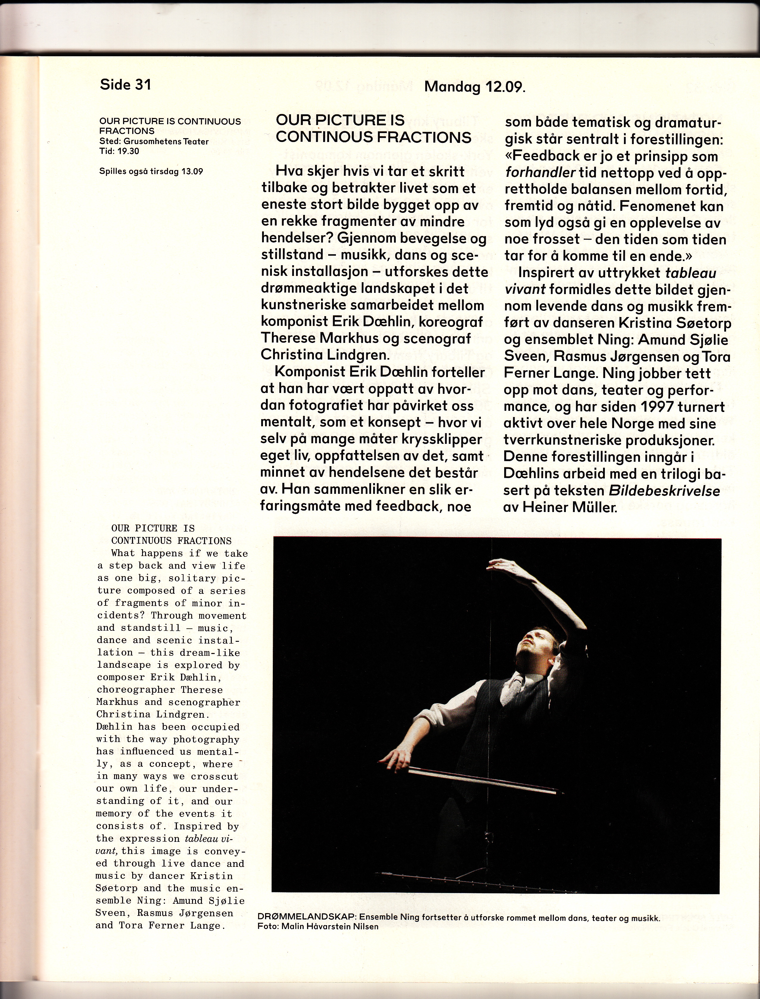 Program for Nings forestilling Our Picture Is Continuous Fractions (2011) - Ultima festivalen 2011