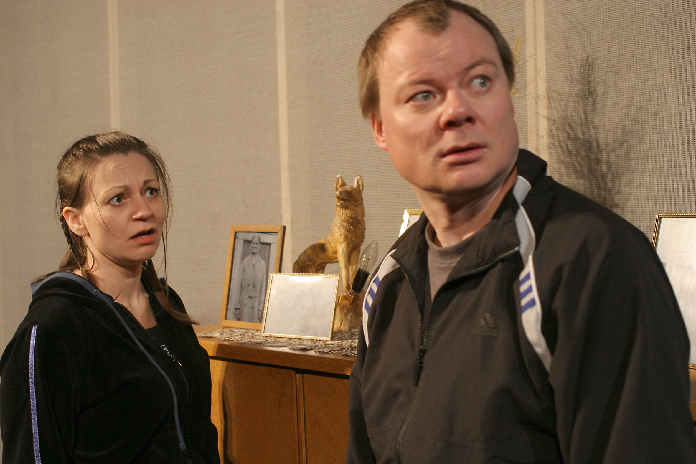 Forestillingsfoto fra Beaivváš Sámi Našunálateáhters produksjon Soames lea boahtimen / Nokon kjem til å komme (2005).