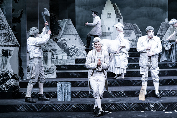 Forestillingsfoto fra Den Nationale Scenes produksjon Erasmus Montanus (2021).