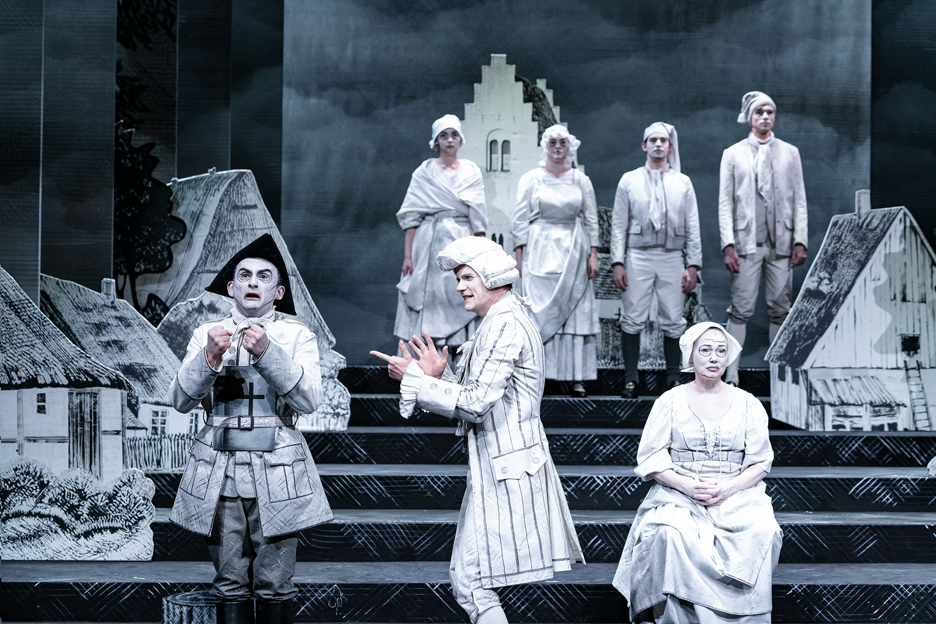 Forestillingsfoto fra Den Nationale Scenes produksjon Erasmus Montanus (2021).