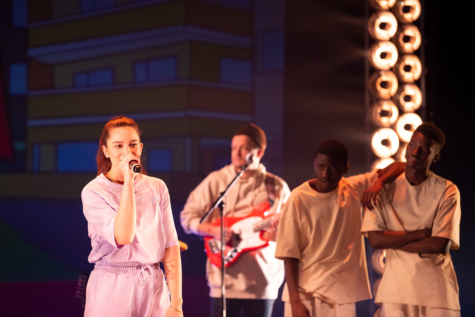 På bildet: Sangere og dansere
