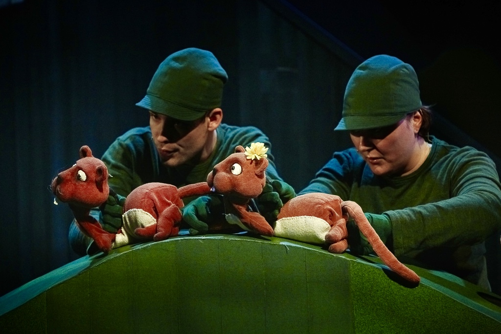 Fotografi fra Riksteatrets produksjon Bukkene Bruse lager rumpebrann (2019)