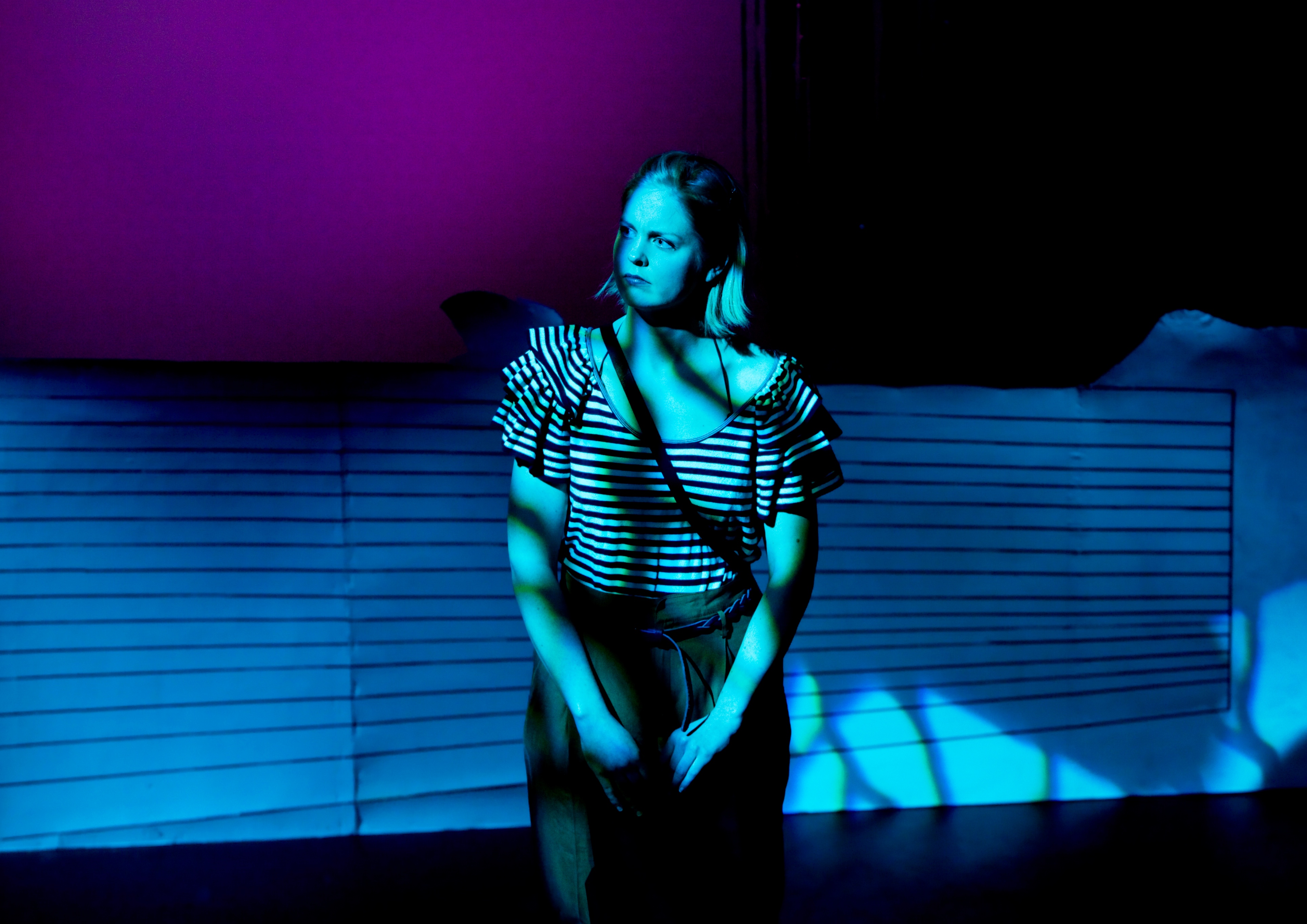 Fotografi fra Isenkramteaterets produksjon Ikaros faller/learning to fly (2010). På bildet: Marte Mørland. Fotograf: Ukjent.