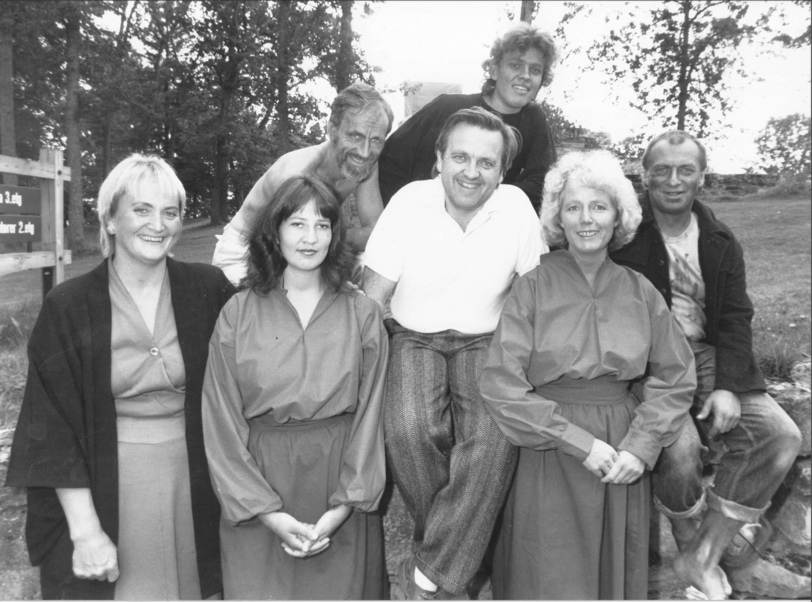 Fotografi av skuespillerne til Suttungteatrets produksjon Vi løfter de lenkede hendene våre (1989).