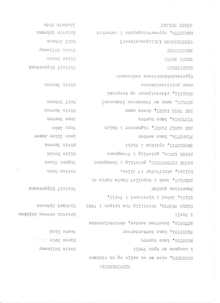 Rolleliste fra Suttungteatrets produksjon Faustina Strozzi (1979).