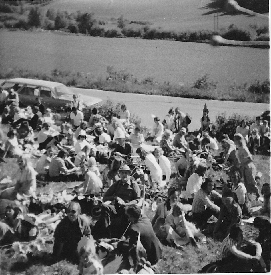 Fotografi av Blomstertoget fra Suttungteatrets festival Werglandsfesten tidlig 1970-tall